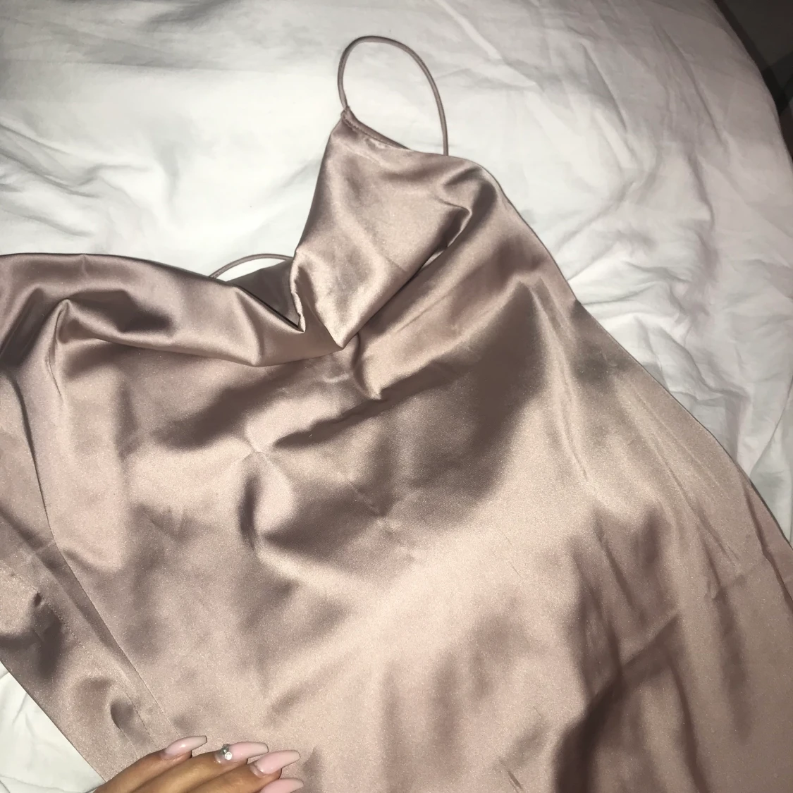 Hej! Säljer en såå fin satinklänning😍 aldrig använd! 24kr frakt tillkommer på priset