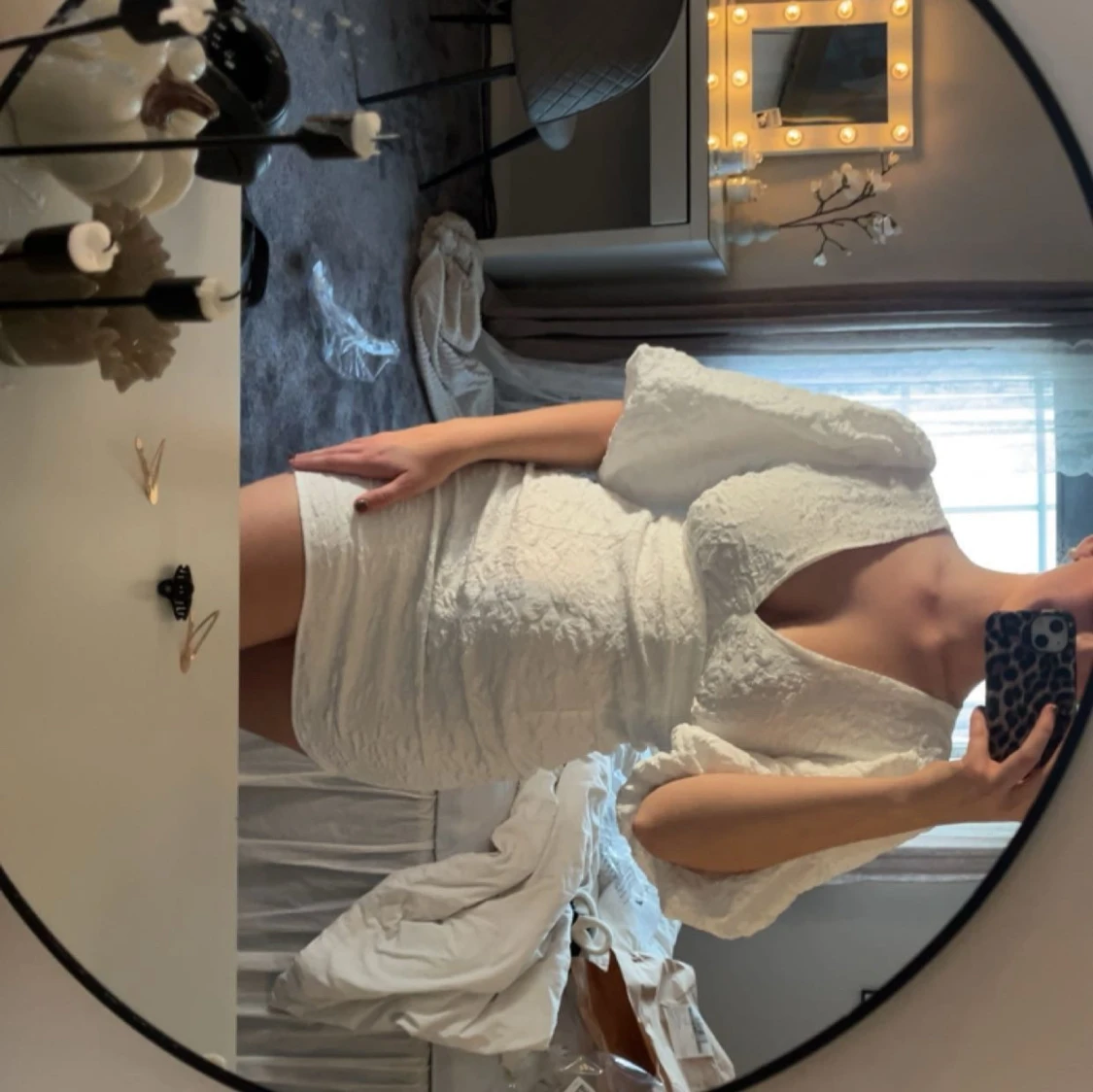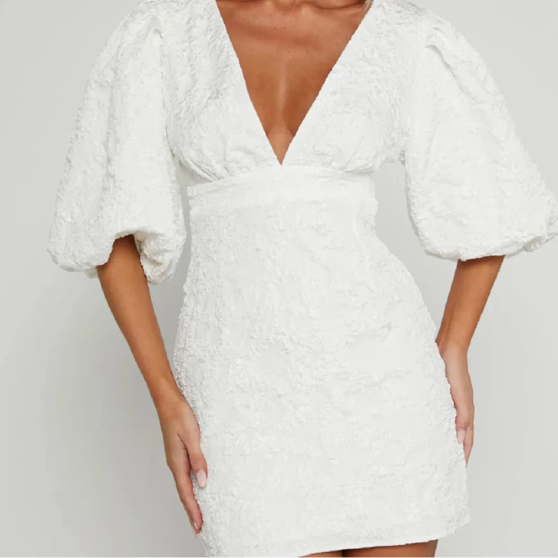 Supersnygg vit kort klänning med djup v-ringning och puffiga ärmar från Showpo❣️