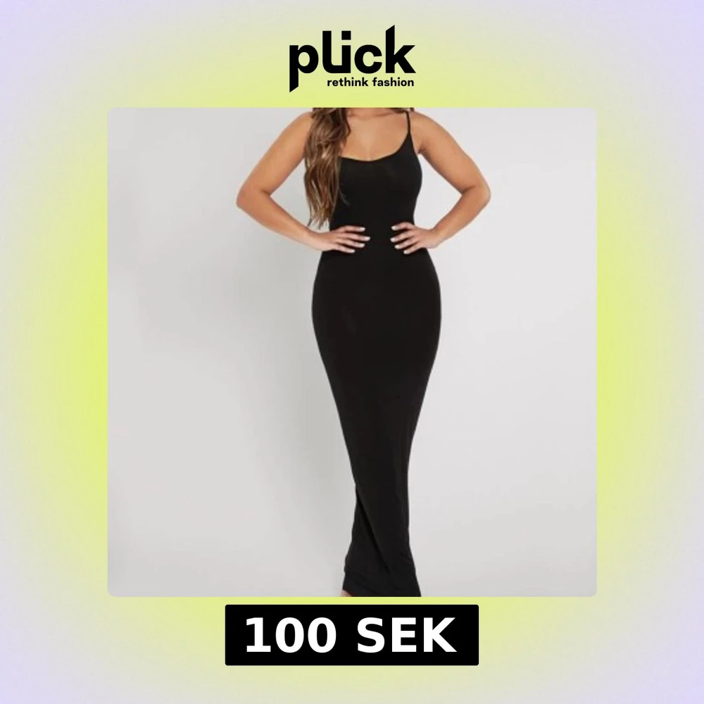 Säljer denna eleganta långklänning med smala och justerbara axelband och figurnära passform. Perfekt för en stilren look inför sommaren!