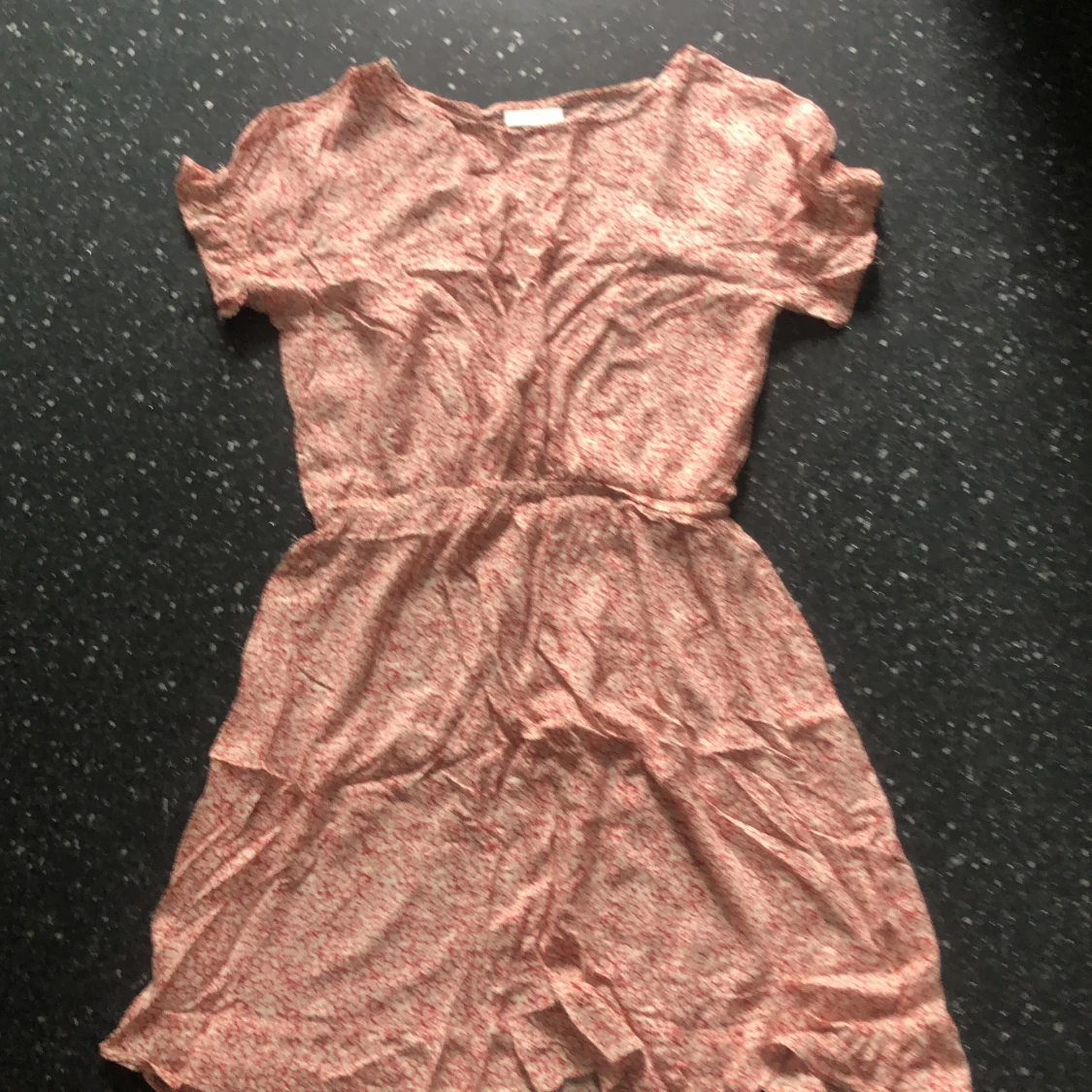 sommrig klänning i fint mönster❣️ stl s men skulle säga att den är mer som xs, inga tecken på användning’