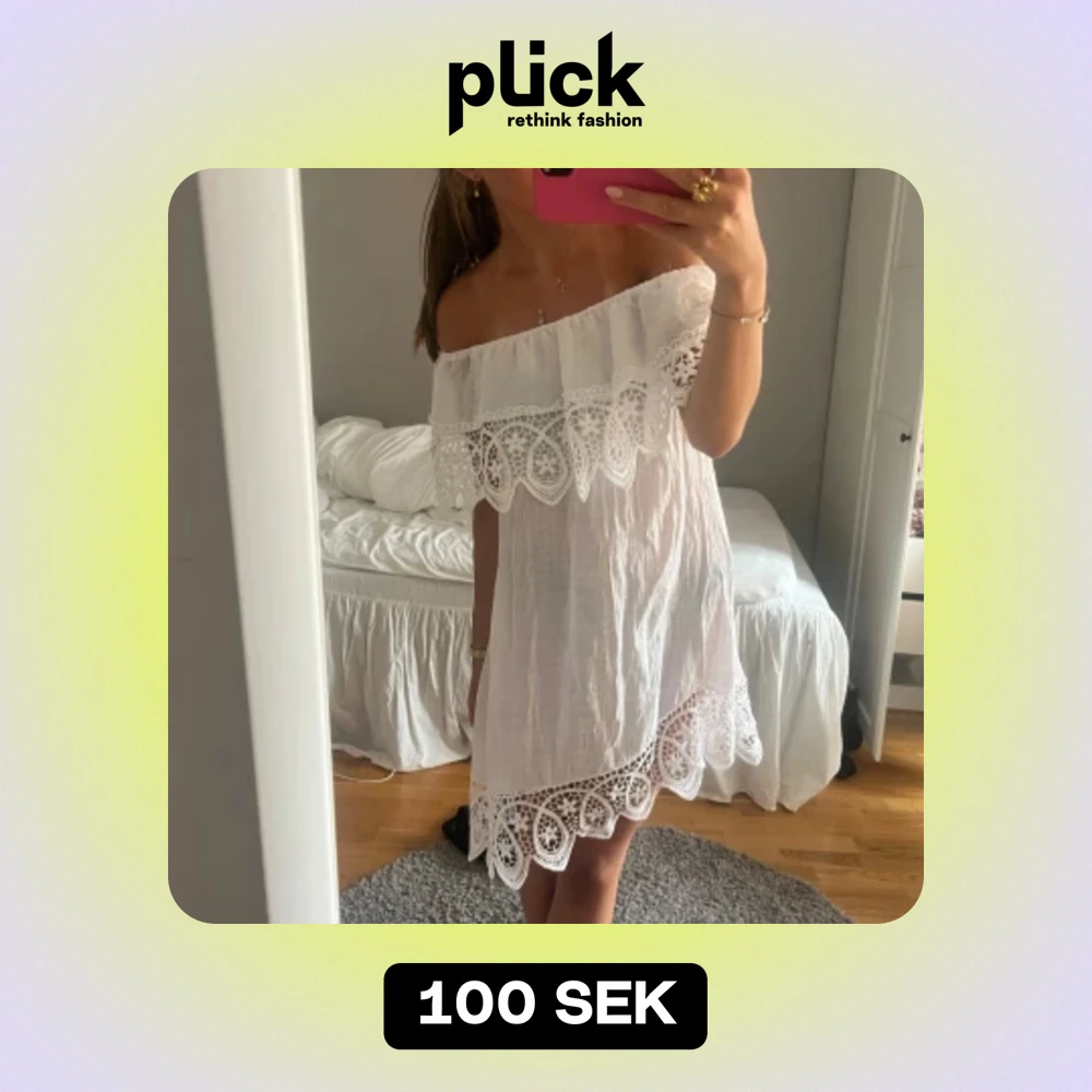 Säljer denna då den aldrig används, söt vit klänning. Den är rätt genomskinlig men funkar bra till tex stranden. Den är köpt itomlands så står varken märke eller strl men jag är ca 1.70 och vanligtvis en xs/s🙌🏼