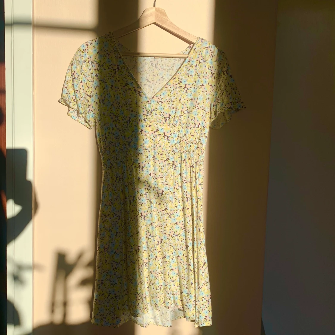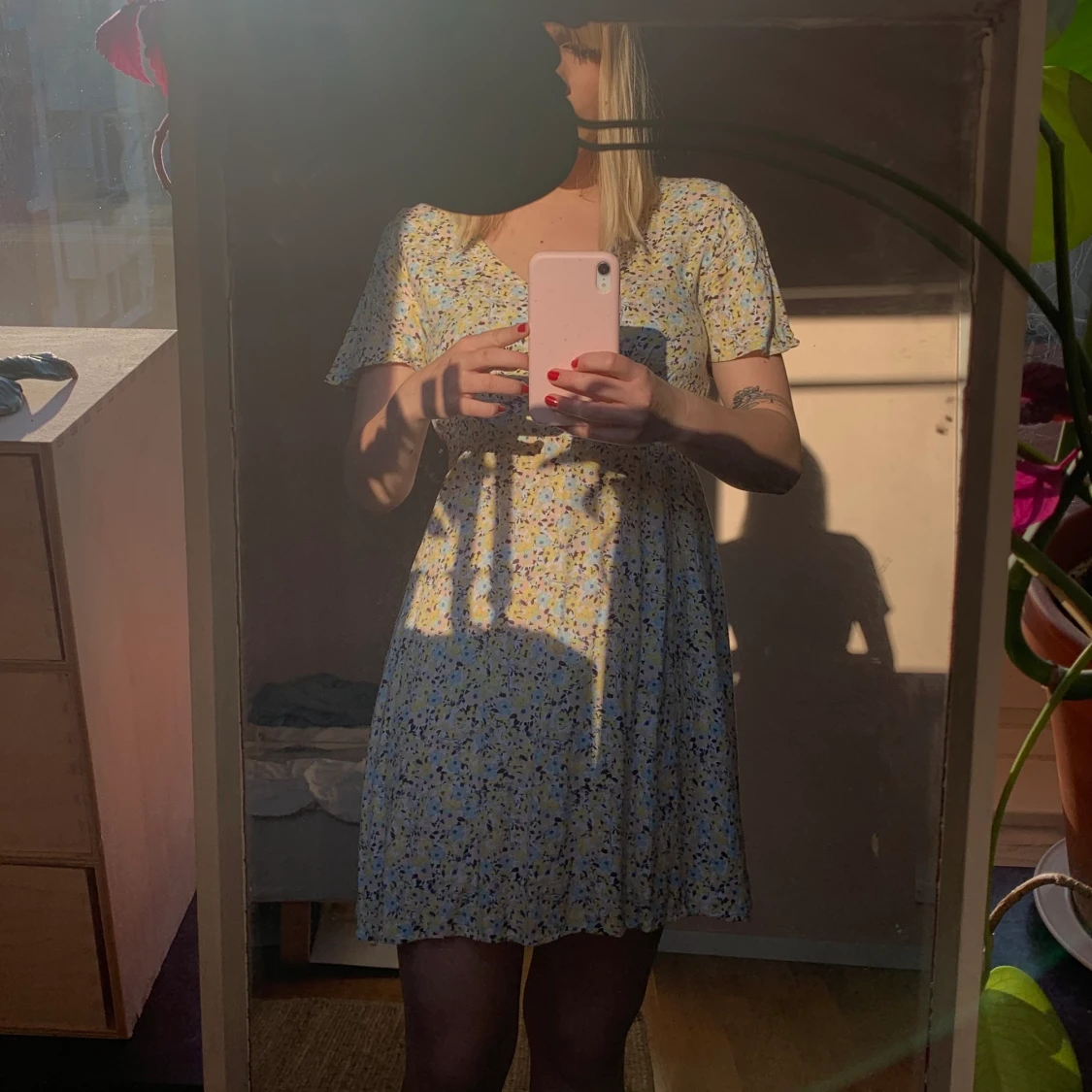 Jättesöt klänning med gula, rosa och blå blommor. Sitter väldigt bra och är väldigt smickrande.