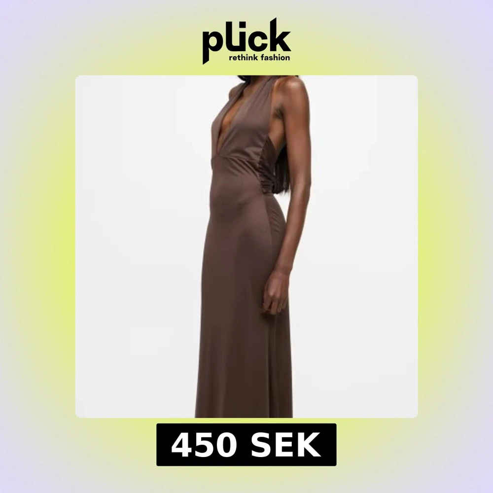 Snygg brun långklänning med djup v-ringning och öppen rygg. Klänningen har knyt i ryggen och är ärmlös, vilket ger en elegant och modern look. Tillverkad i ett mjukt, följsamt material som faller fint längs kroppen. Klänningen är i storlek S och är från bikbok, helt ny med lappar! Nypris 699💕