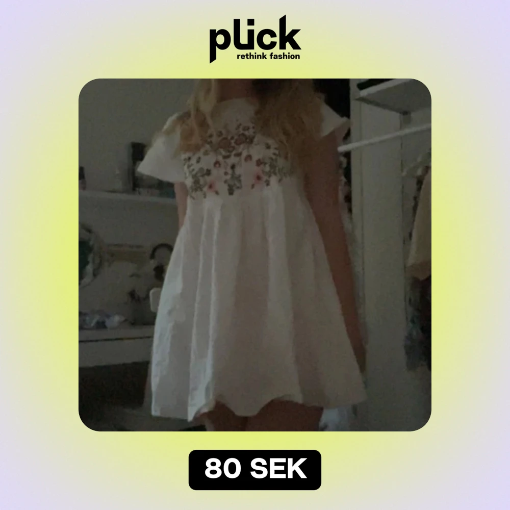 Vit kort klänning prydd med broderade blommor. Verkligen supersöt och somrig!! Den är tidigare köpt på Sellpy, för 130kr, men är fint bevarad. Skriv gärna vid eventuella frågor 💞
