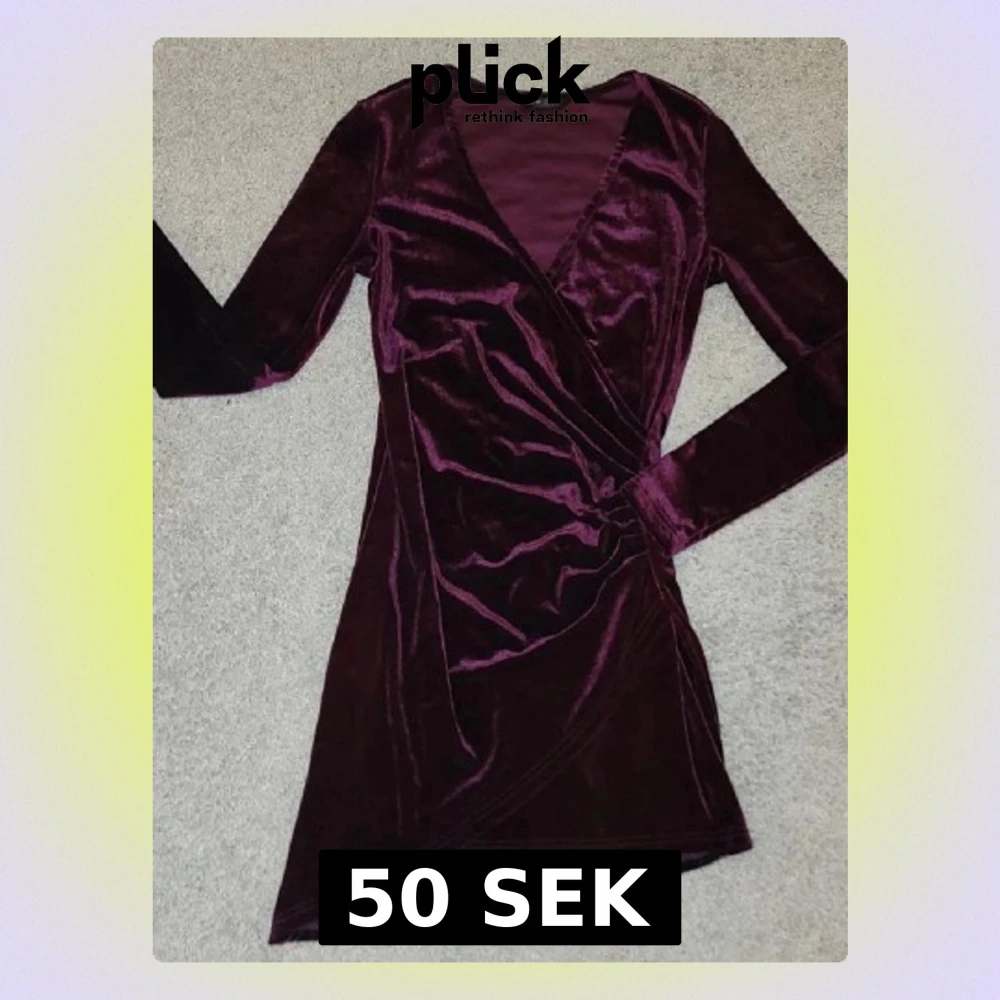 Snygg klänning i sammet med omlott-design och v-ringning. Klänningen har långa ärmar och en kort längd som passar perfekt för festliga tillfällen✨️