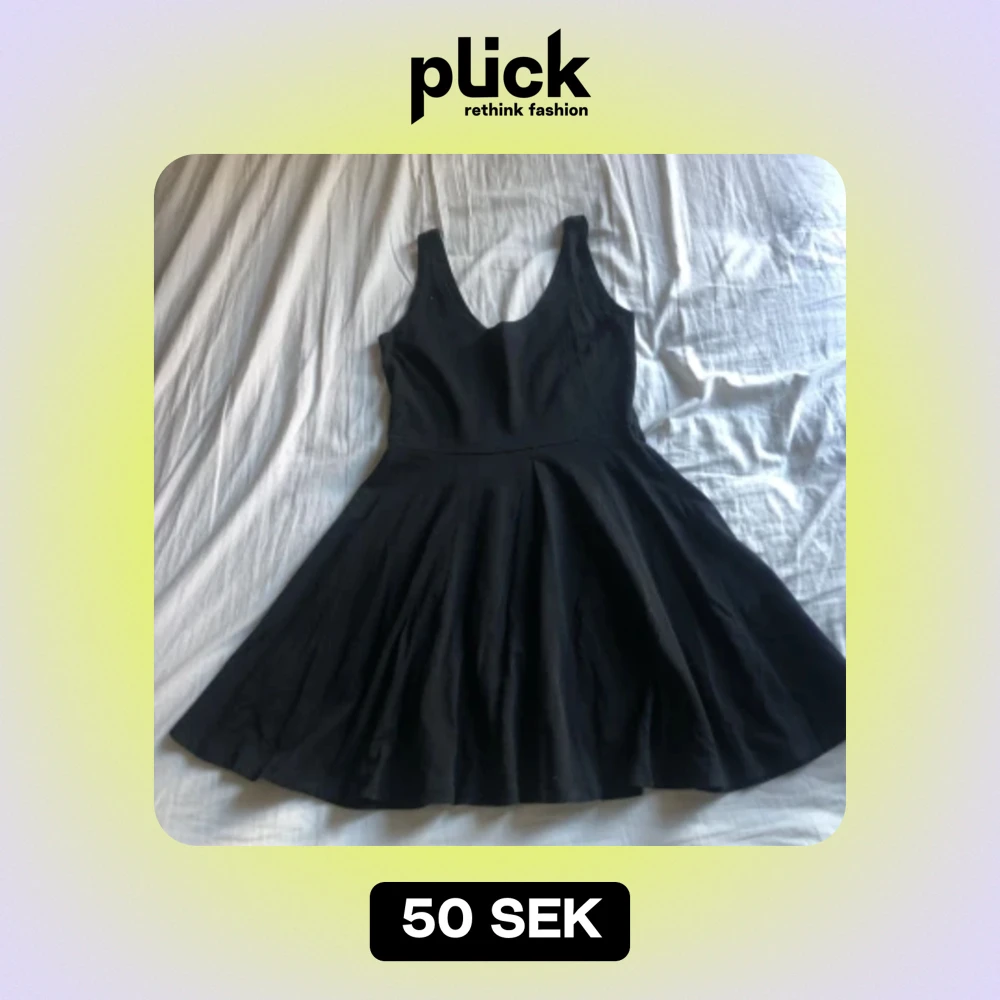 En svart klänning som är lika djup i fram som bak. Det finns några små hål som jag inte tycker syns så mycket framme på ”kragen” eller vid brösten (sista bilden), alla bilder är tagna framifrån så man får avgöra själv hur mycket de syns!