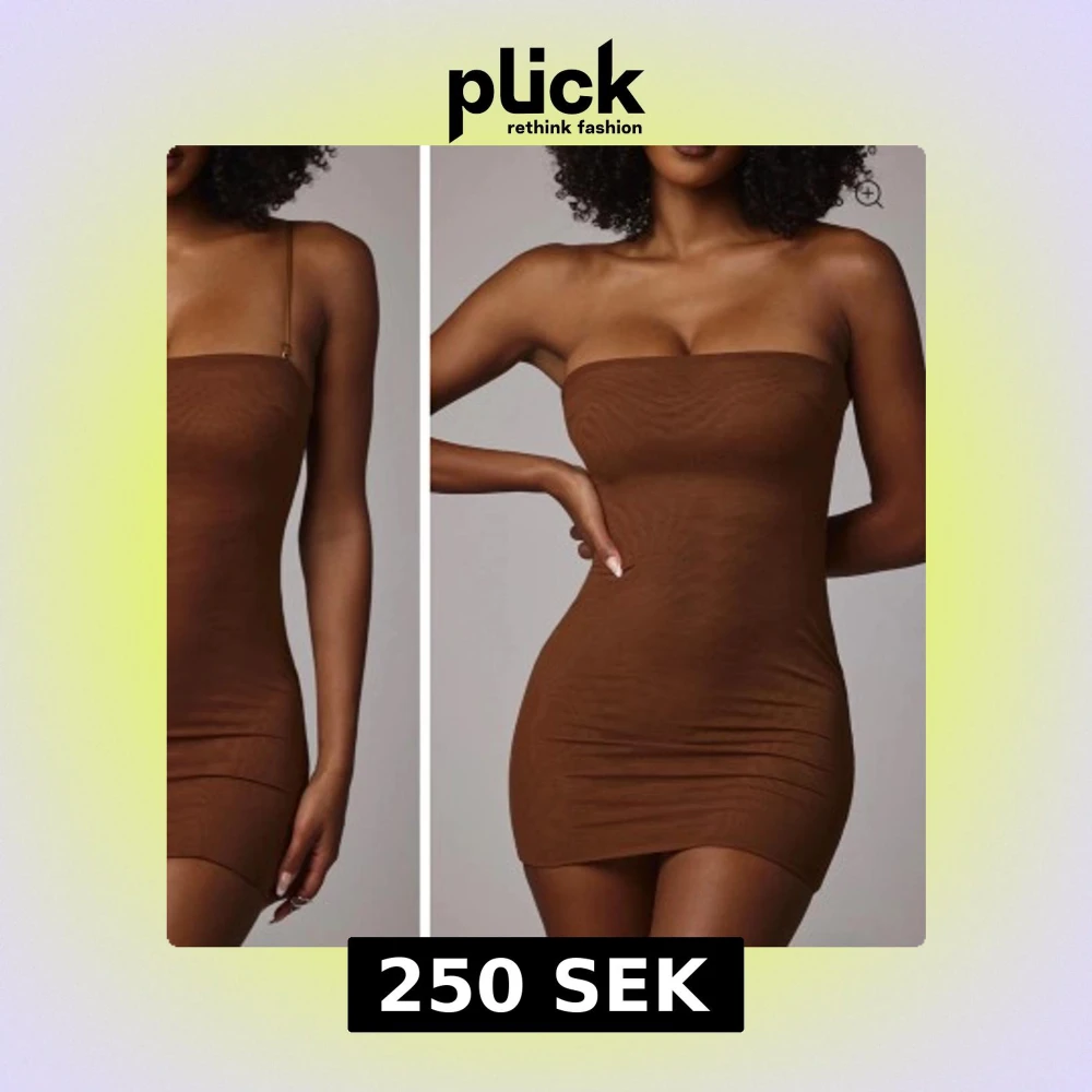 Snygg brun under klänning från Oh Polly med justerbara smala axelband och draperad halsringning. Modellen är kort och figurnära. Materialet är mjukt och har en lätt glansig finish som ger en exklusiv känsla.