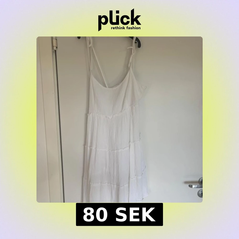 Säljer en luftig vit klänning med smala axelband och volangdetaljer. Använd max 3 gånger. Perfekt till stranden! Minns inte vart där kommer ifrån 🤍