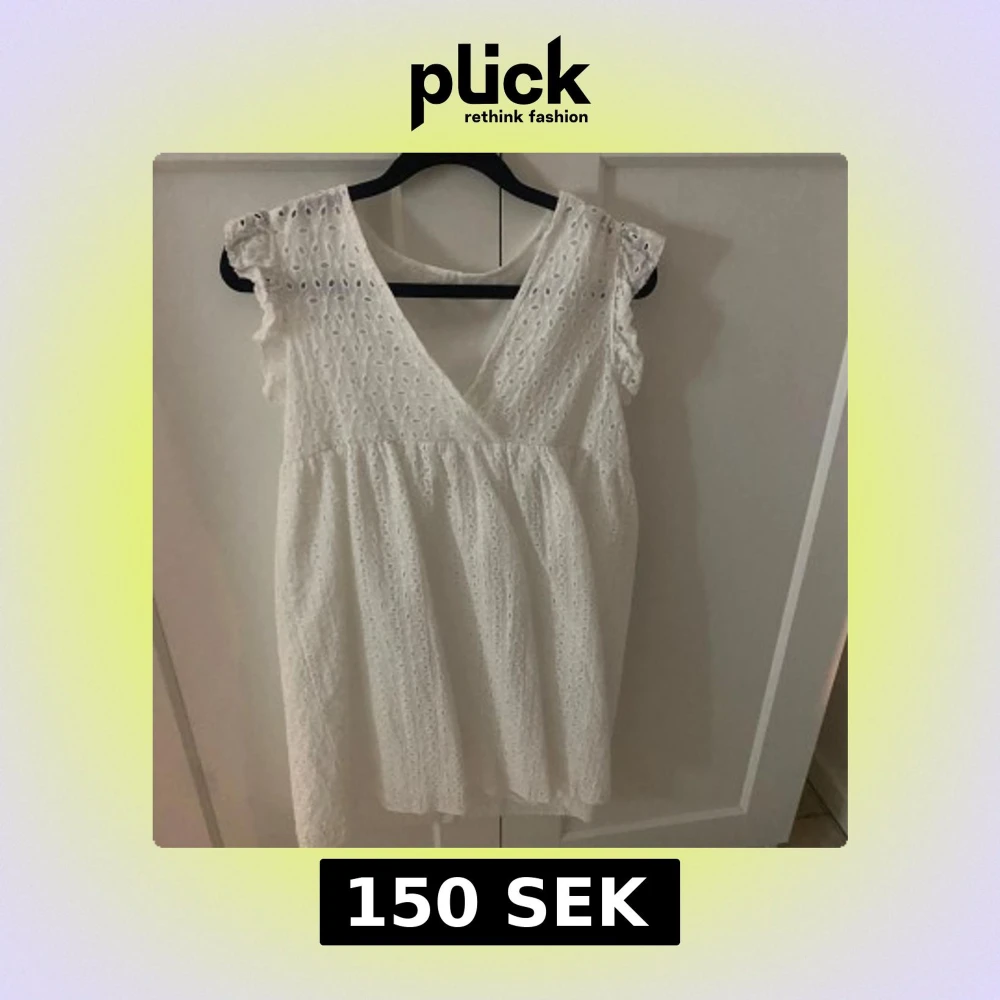 Vit klänning med lite typ spetsdetaljer och v-ringad. Köpt för längesen men tyvärr aldrig använd💕💕