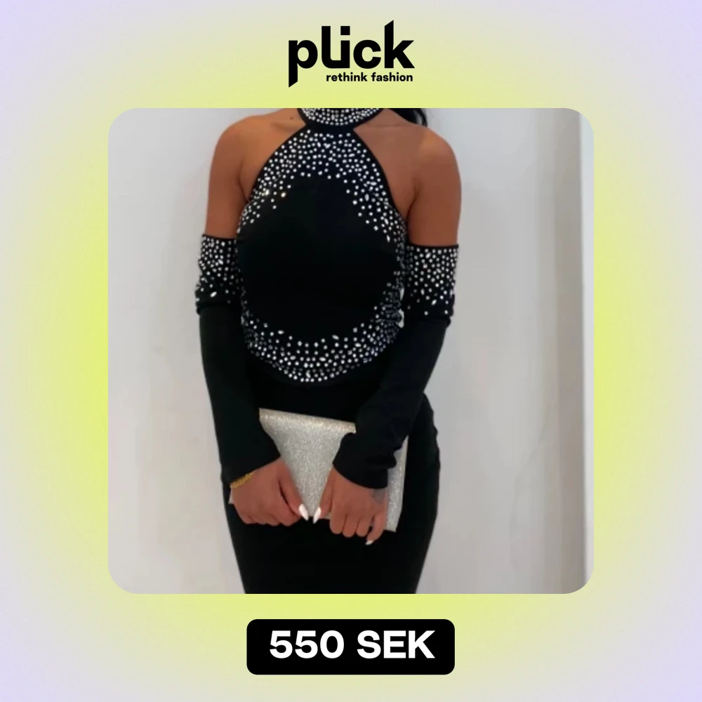 Otroligt fin klänning som formar sig t kroppen , man kan även ta bort armarna om man hellre vill vara utan(använts en gång)