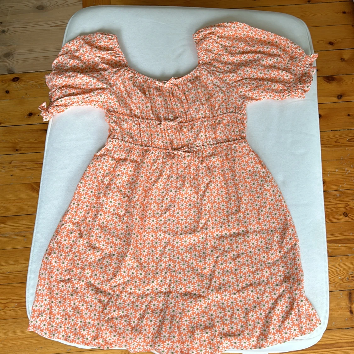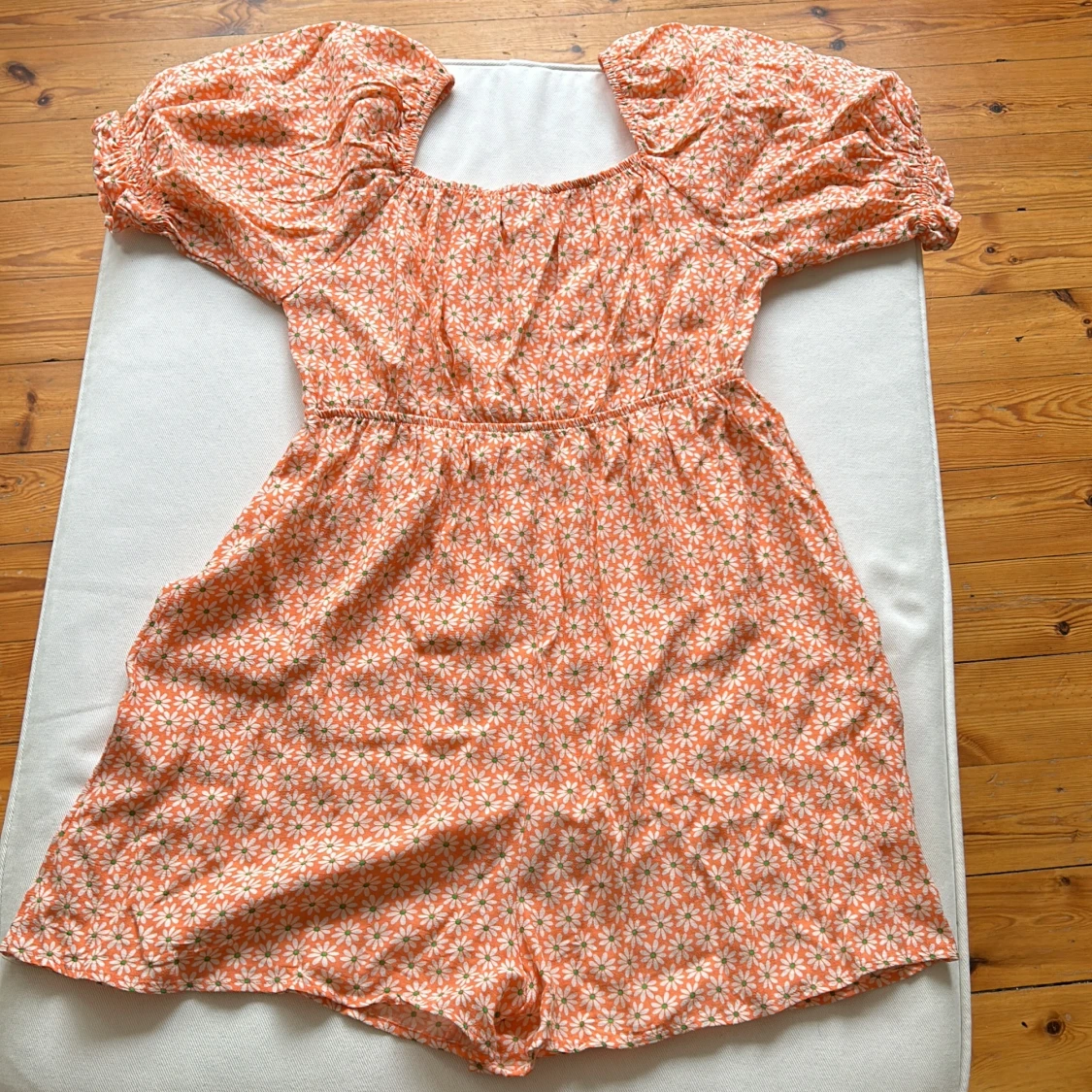 Väldigt söt byxdress som ser ut som en klänning när den sitter på helt utan defekter Ser skrynklig ut på bild men stryker självklart innan jag skickar iväg