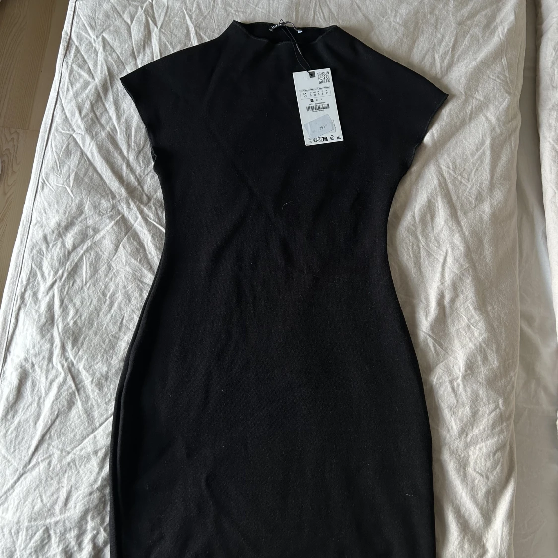 Kort svart stickad zara klänning. Aldrig använd därav prislappen kvar!