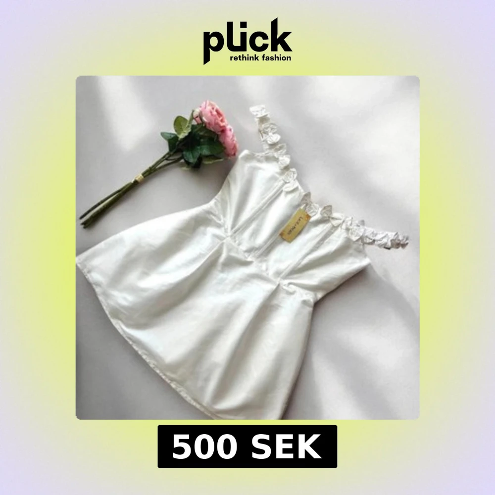 Supersöt vit kort klänning från Lace & Beads med axelband dekorerade med små rosetter. Klänningen har en lätt utsvängd kjol och markerad midja. Materialet är glansigt och känns lyxigt, perfekt för sommarens alla tillfällen. Storlek 14. Skulle säga att den är en storlek L