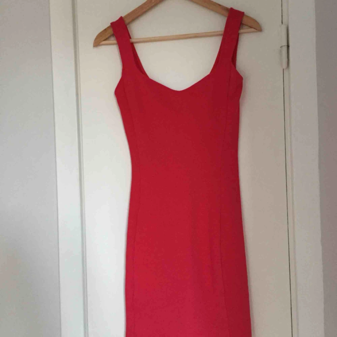 Tajt röd klänning från Bershka med fin skurning där fram. Köparen står för frakten