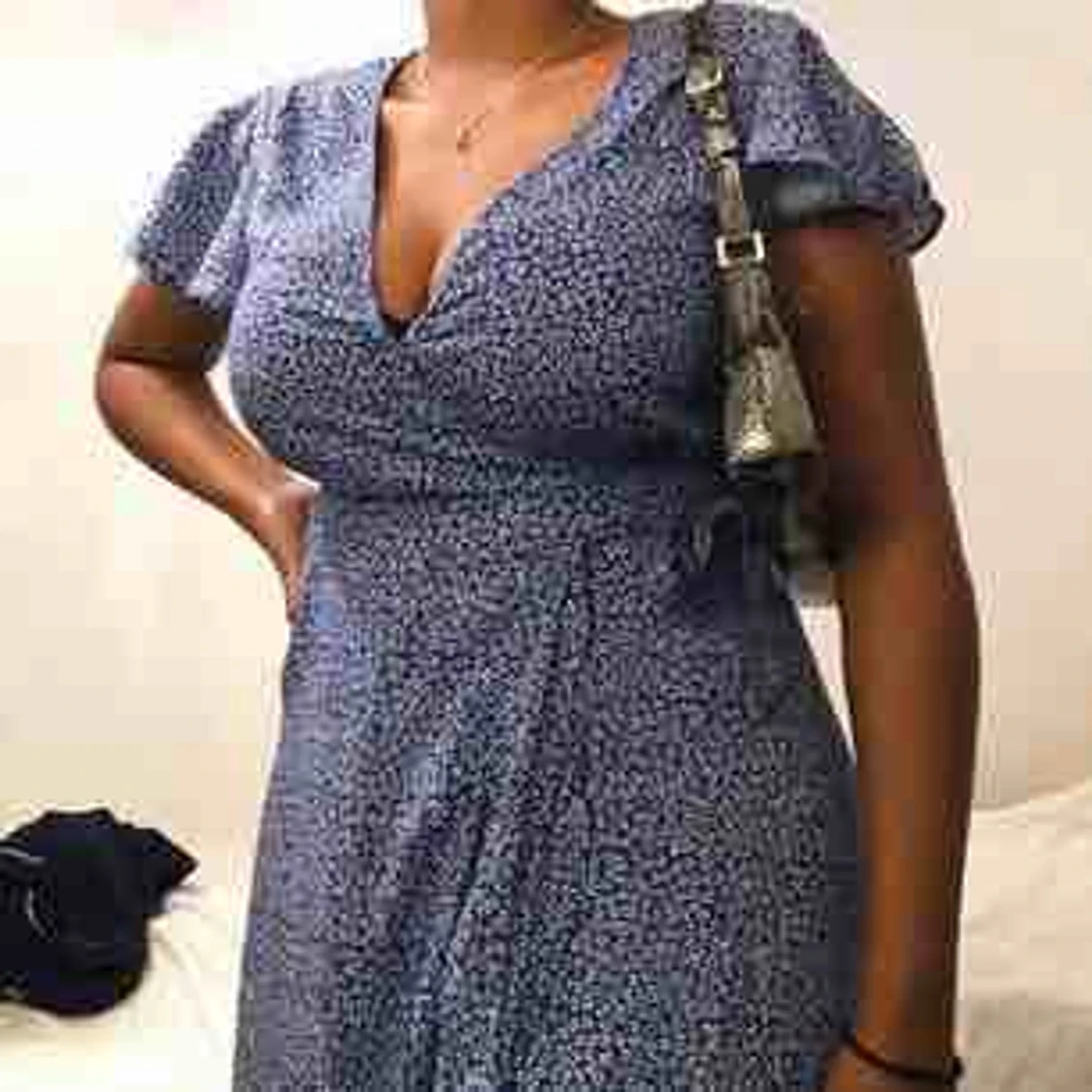 Superfin sommarklänning från Shein. Aldrig använd, därför i fint skick. Säljes pga fel storlek. Storlek Medium men då det är en ”wrap dress” kan man spänna åt den, så den passar även en Small. + 40 kr frakt
