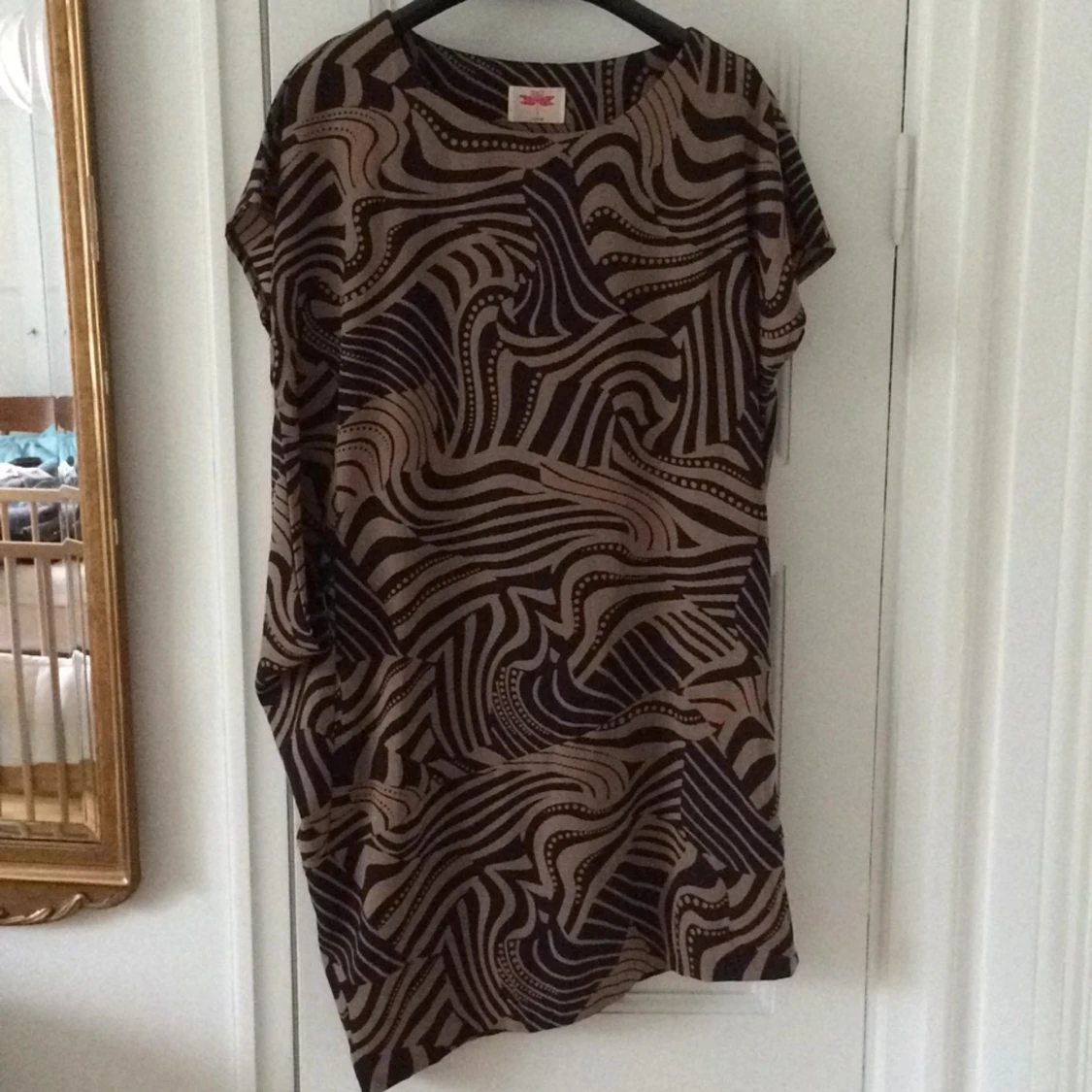 Brun och mörkblå klänning, mycket fint skick. Endast använd en gång. Underkänning i glansigt material. Köparen står för frakten, 36 kr. Hat swish.
