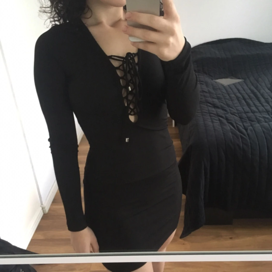Klänning från Gina tricot med snöring. Plagget finns kvar sålänge det inte står att det är sålt, köparen betalar frakten
