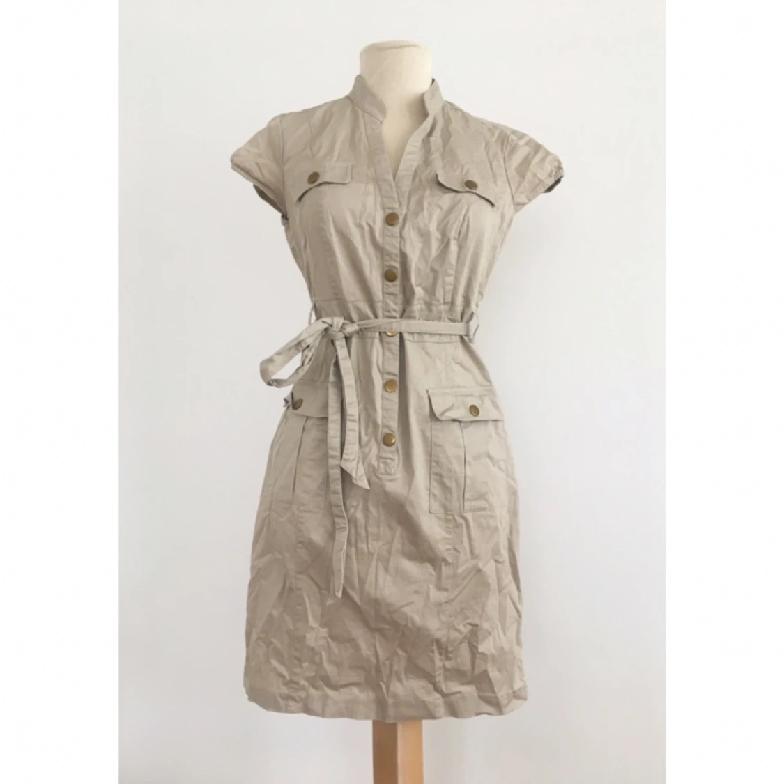 Snygg skjortklänning med fina detaljer. Märke: H&M Storlek: 36/38 Skick: Mycket gott. Använd endast 3 gånger. Pris: 75 kronor Frakt: Betalas av köparen.