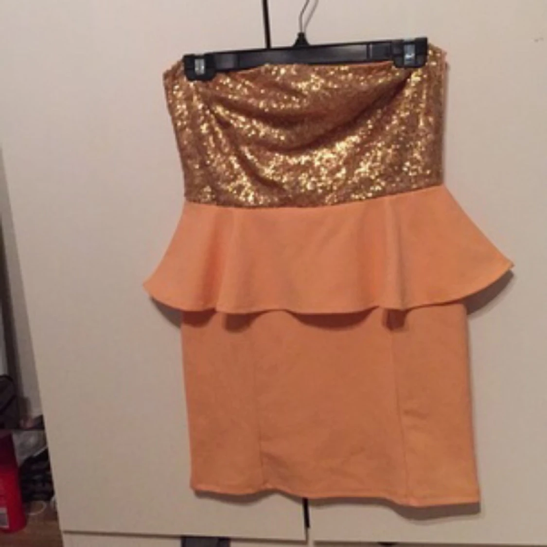 En klänning med paljetter som endast är använd en gång. Köpare står för eventuell frakt.