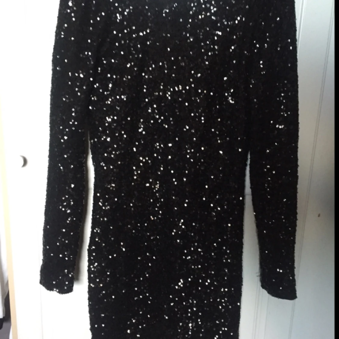 Fin svart paljettklänning storlek S Finns att hämta i Upplands Väsby, kan även skicka men det ingår inte i priset. 170kr