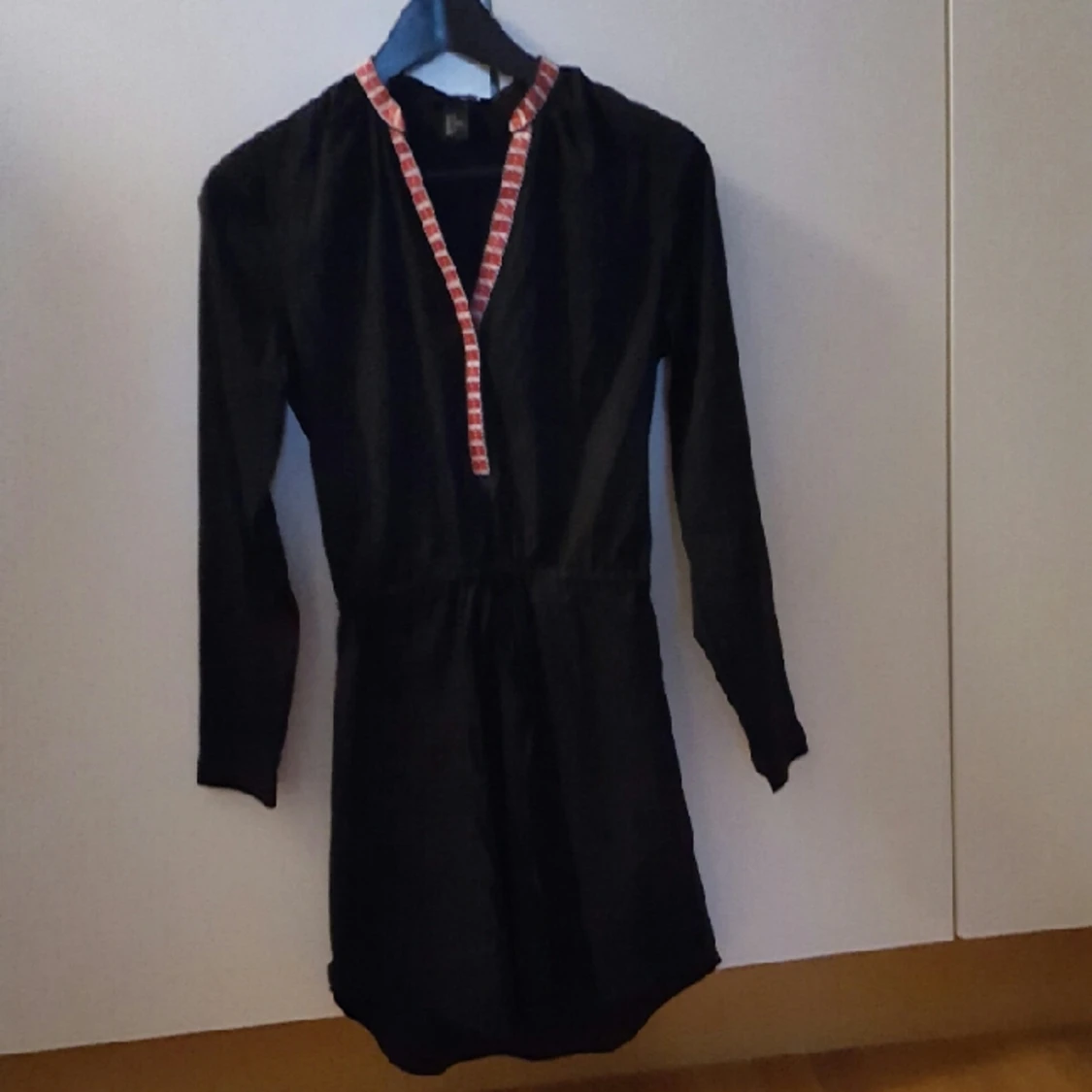 Svart klänning med snygg detalj och dragsko i midjan. Möts gärna i Gbg, annars tillkommer fraktkostnad för köparen.
