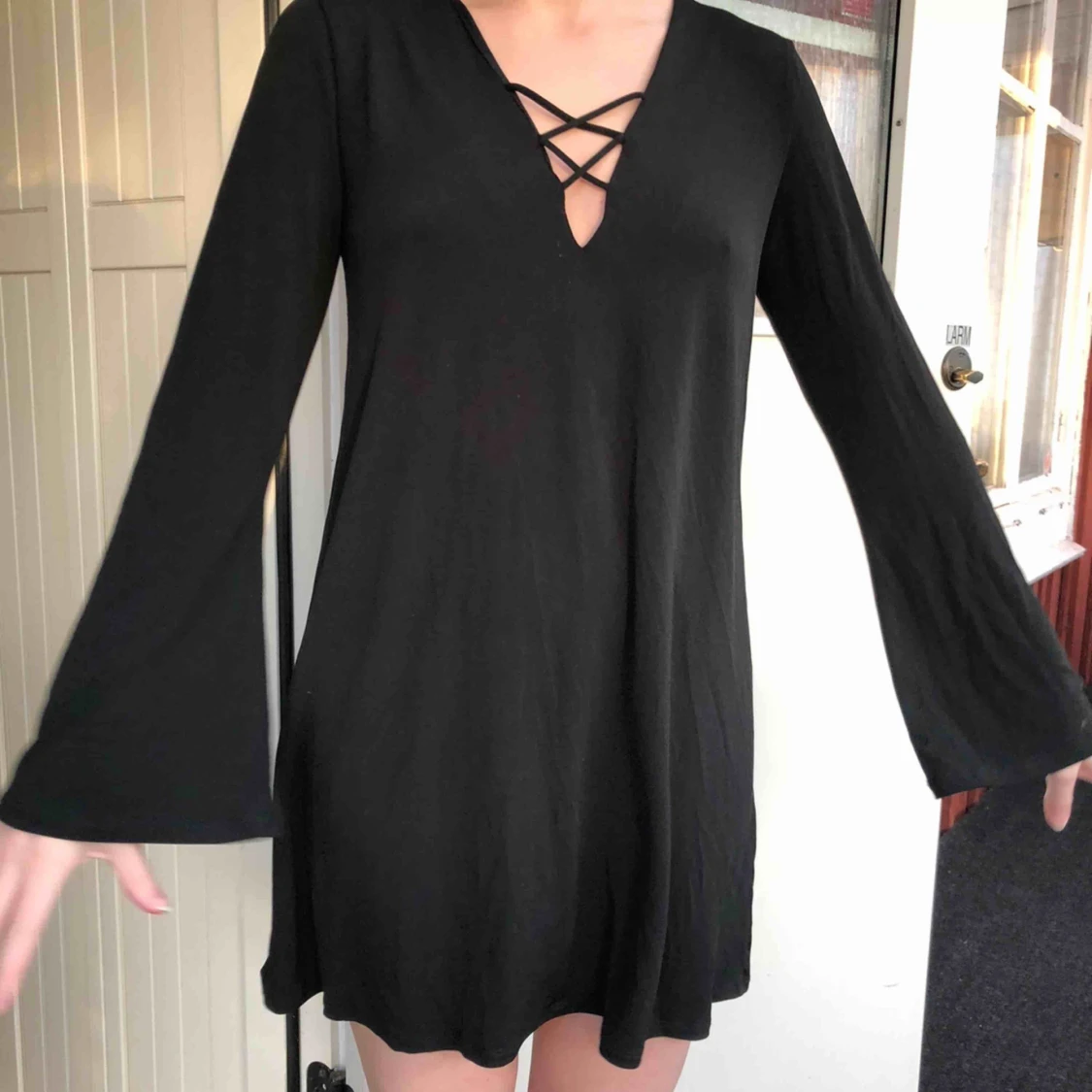 Svart klänning köpt från Nelly i strl S. Lappen är bortklippt. Använd en gång! Superskön och lös modell! Köparen står för ev frakt!🌼