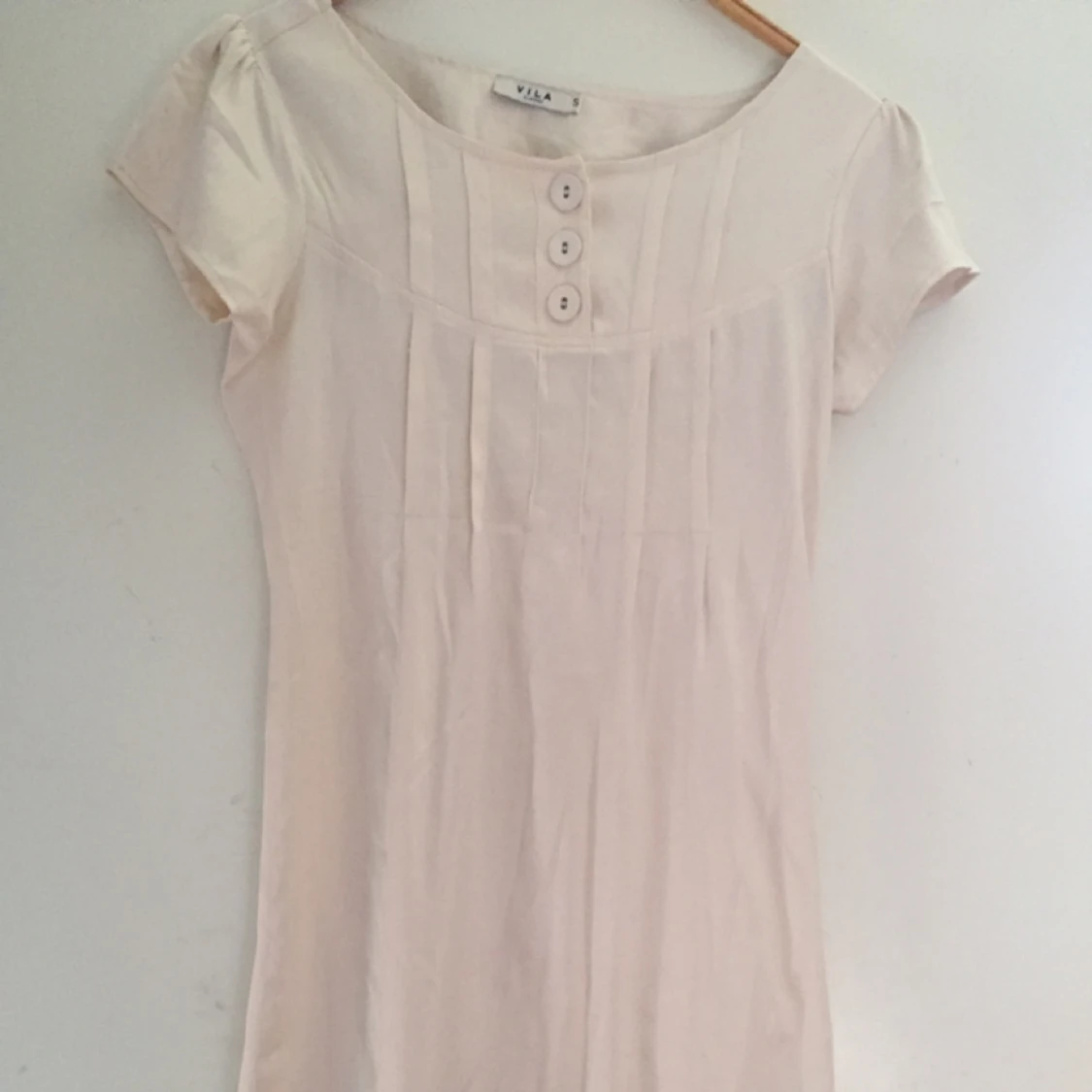 Vit silkig klänning, fin till studenten! Jag är 1.69 och den går lite över knäna. Från vero Moda, använd 2 ggr!