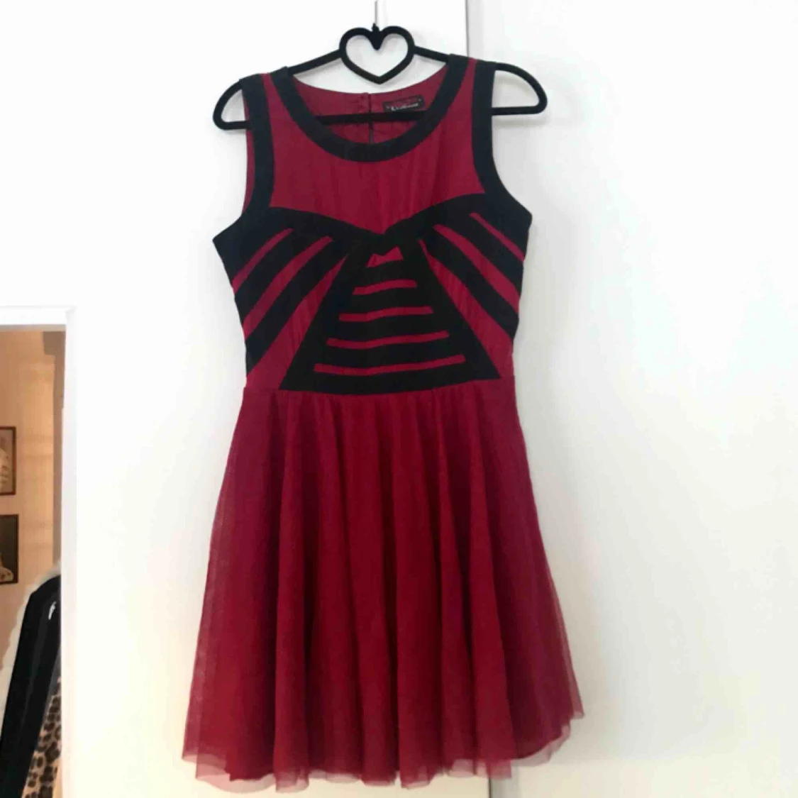 Röd klänning med svarta detaljer, inköpt i Australien. Finns att hämta i Uppsala. Kan även posta, säljaren betalar då frakt