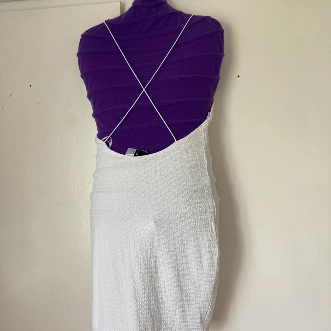 Köpt på H&M, har aldrig använt, vit med korsad rygg. Ner till lite över knäna