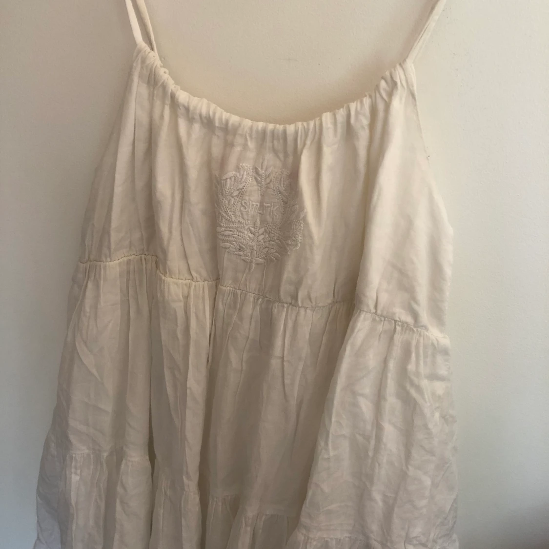 Jättefin vit klänning med en liten knytning framtill. Superfin i ryggen och inte genomskinlig alls! Perfekt till sommaren.