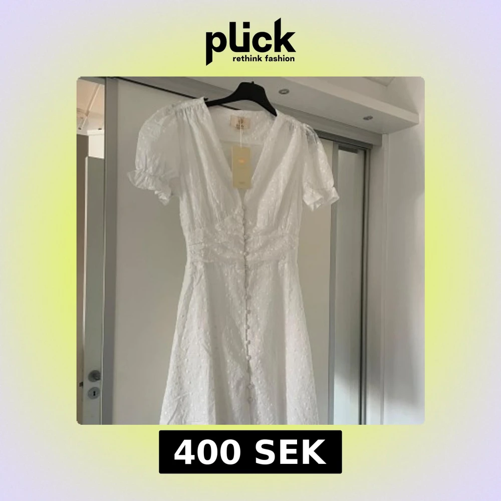 Säljer en söt vit klänning från Chelsea i storlek XS, aldrig använd och har lappen kvar. Klänningen har korta puffärmar, v-ringning och knappar framtill. Perfekt för sommaren, student, skolavslutning eller konfirmation❤️❤️