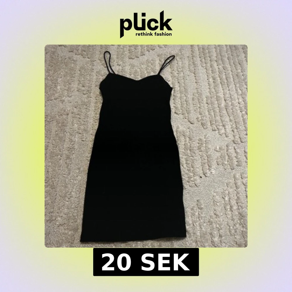 Säljer en svart tight klänning med smala axelband och figurnära passform. Klänningen har en enkel och stilren design, perfekt för dig som gillar minimalistiskt mode.