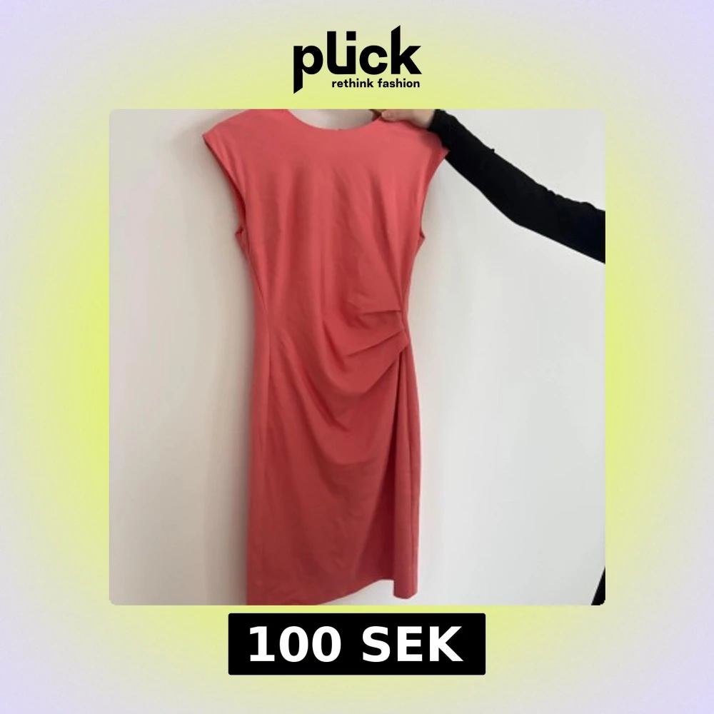 Snygg korallfärgad klänning från Tiger of Sweden med dragkedja baktill. Klänningen har en elegant drapering på framsidan och är ärmlös, vilket ger en stilren look. Storlek 34