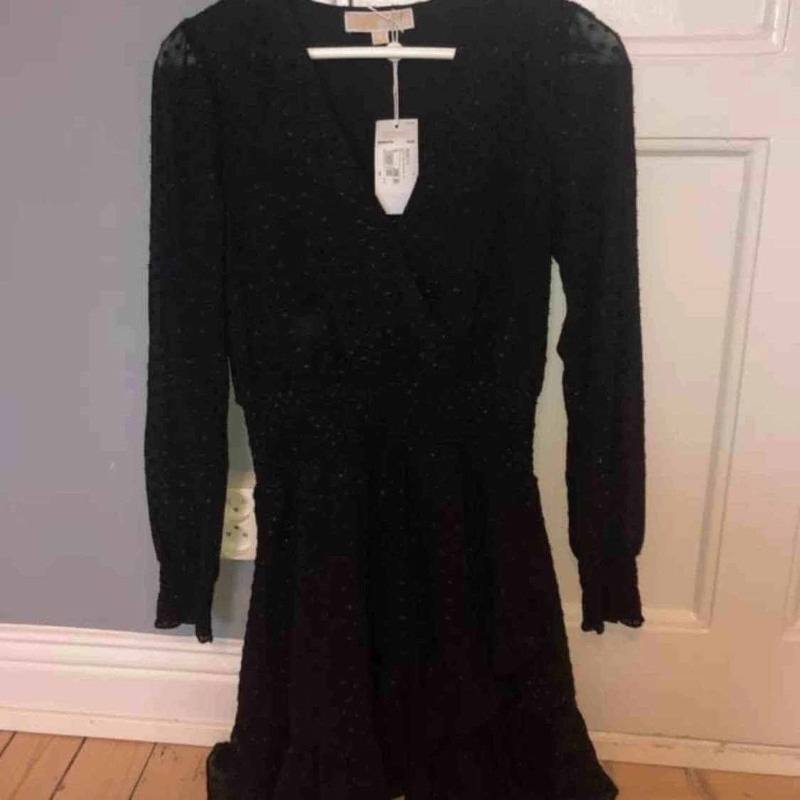 Svart klänning med dova glittriga detaljer från Michael Kors. Går till strax över knäna och omlott på överdelen. Perfekt till nyår!✨ Använd under en kväll! Nypris 2499, nu 499. Säljer då den är för tight över bysten på mig. Köparen står för frakt!