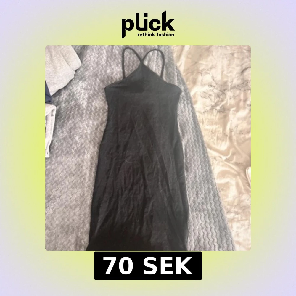 Säljer en svart långklänning med smala axelband och enkel, stilren design. Klänningen har en tight passform och är perfekt för dig som gillar minimalistisk stil. Materialet känns mjukt och följsamt mot kroppen.