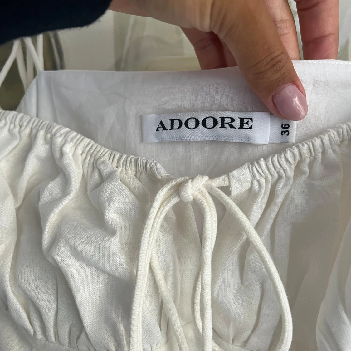 Supersnygg vit kort klänning från Adoore. Modellen heter Santorini och sälj inte längre. Klänningen är använd 2-3 gånger och är i nyskick!🦩🦩