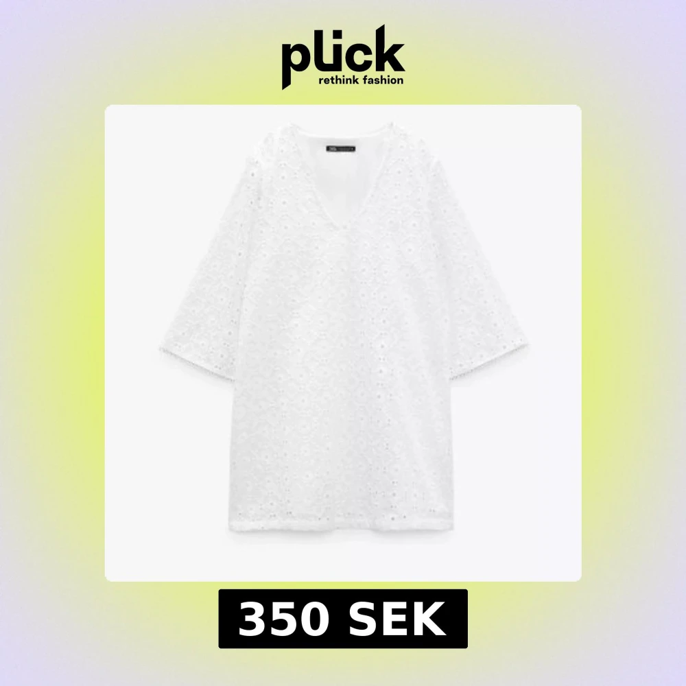 Superfin vit klänning från Zara med broderade detaljer och v-ringning. Klänningen har trekvartsärm och är i kort modell. Tak i modellen och ger en väldigt elegant look. Kommer tyvärr inte till användning.