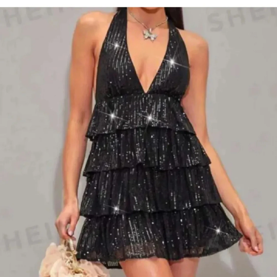 Supersnygg svart kortklänning. Skrev för egna bilder