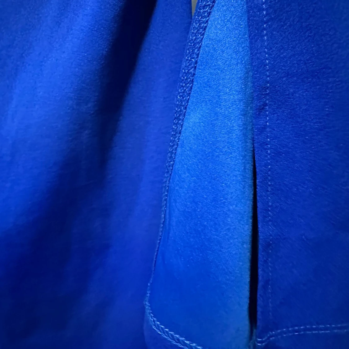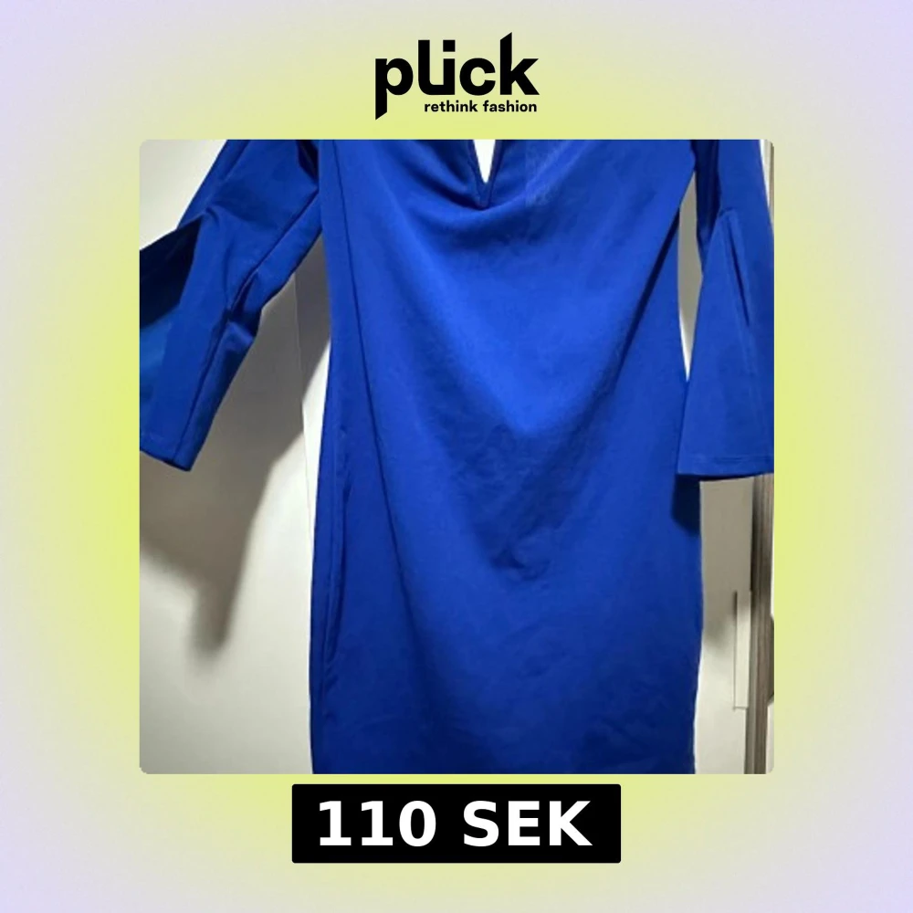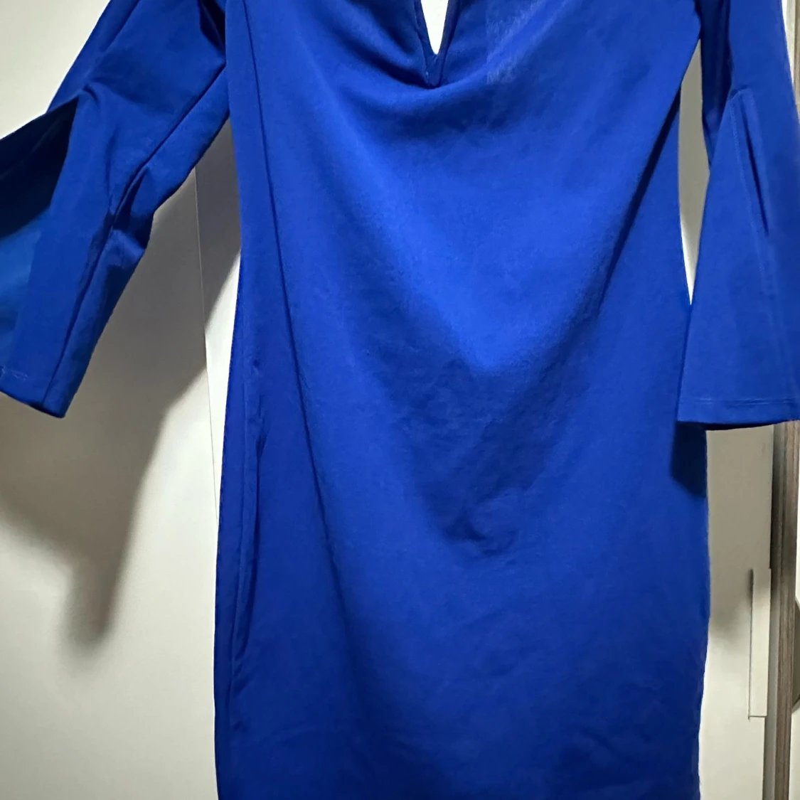 Snygg kornblå klänning med v-ringad hals och vida trekvartsärmar. Enkel och stilren design som ger ett modernt intryck. Mjuk och skön känsla i materialet, perfekt för dig som gillar färg och vill sticka ut. Bilden gör att det inte ser så bra ut MEN den är väldigt väldigt vacker på💙 och THIGHT!