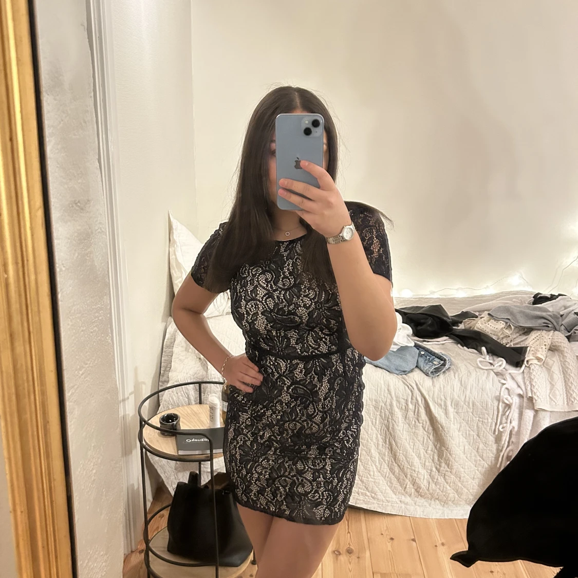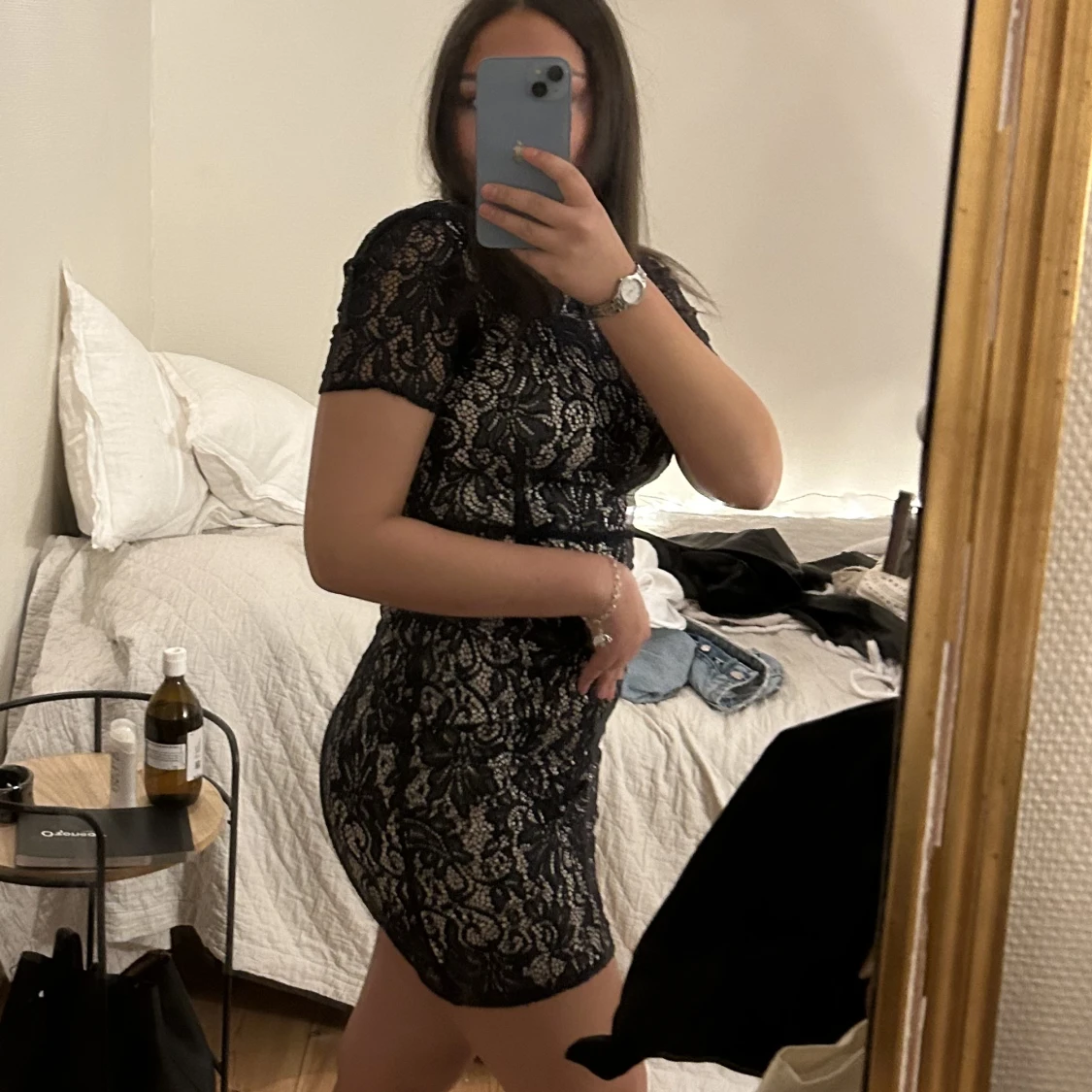 Superfin cocktailklänning XS från Vila Mörkblå spets Köpare står för frakt / mötas i Uppsala Säljer mer kläder, vid köp av fler plagg kan paketpris ordnas
