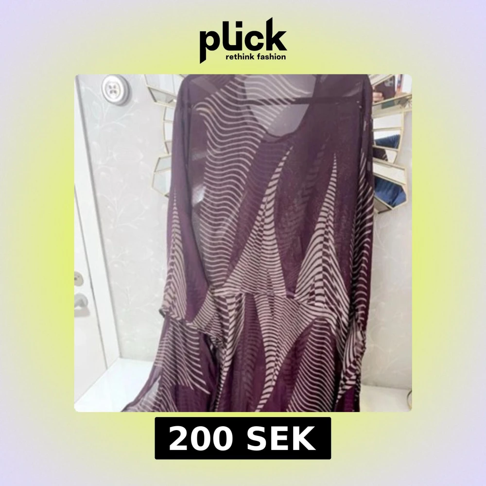 Säljer en lång, flowy kurdisk klänning i transparent material med lila och beige vågiga ränder. Klänningen har vida ärmar och ett riktigt coolt, grafiskt mönster som sticker ut. Perfekt för dig som gillar statement-plagg och vill ha något unikt i garderoben. Passar storleken M och L✨