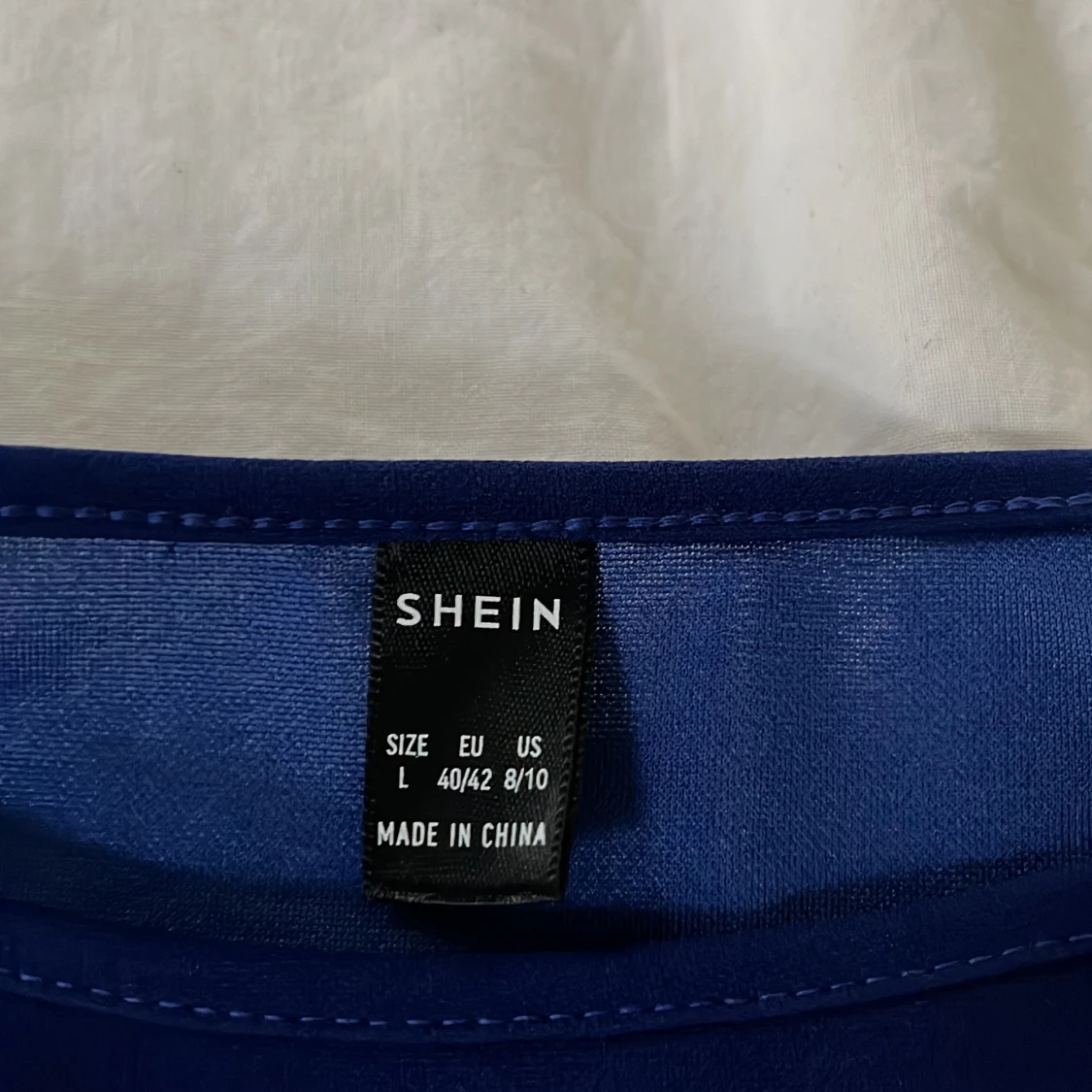 Jag säljer den marinblå klänning från SHEIN för 160 sek . Storlek är L .