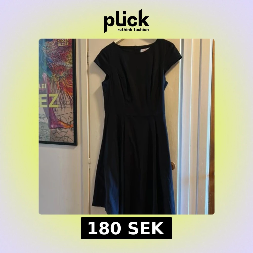 En svart, klassisk klänning från Dressystar (L) med kort ärm och rund halsringning. Klänningen har en utställd kjol med fina veck och dragkedja i ryggen. Perfekt för dig som gillar enkel men elegant stil. Liten i storlek