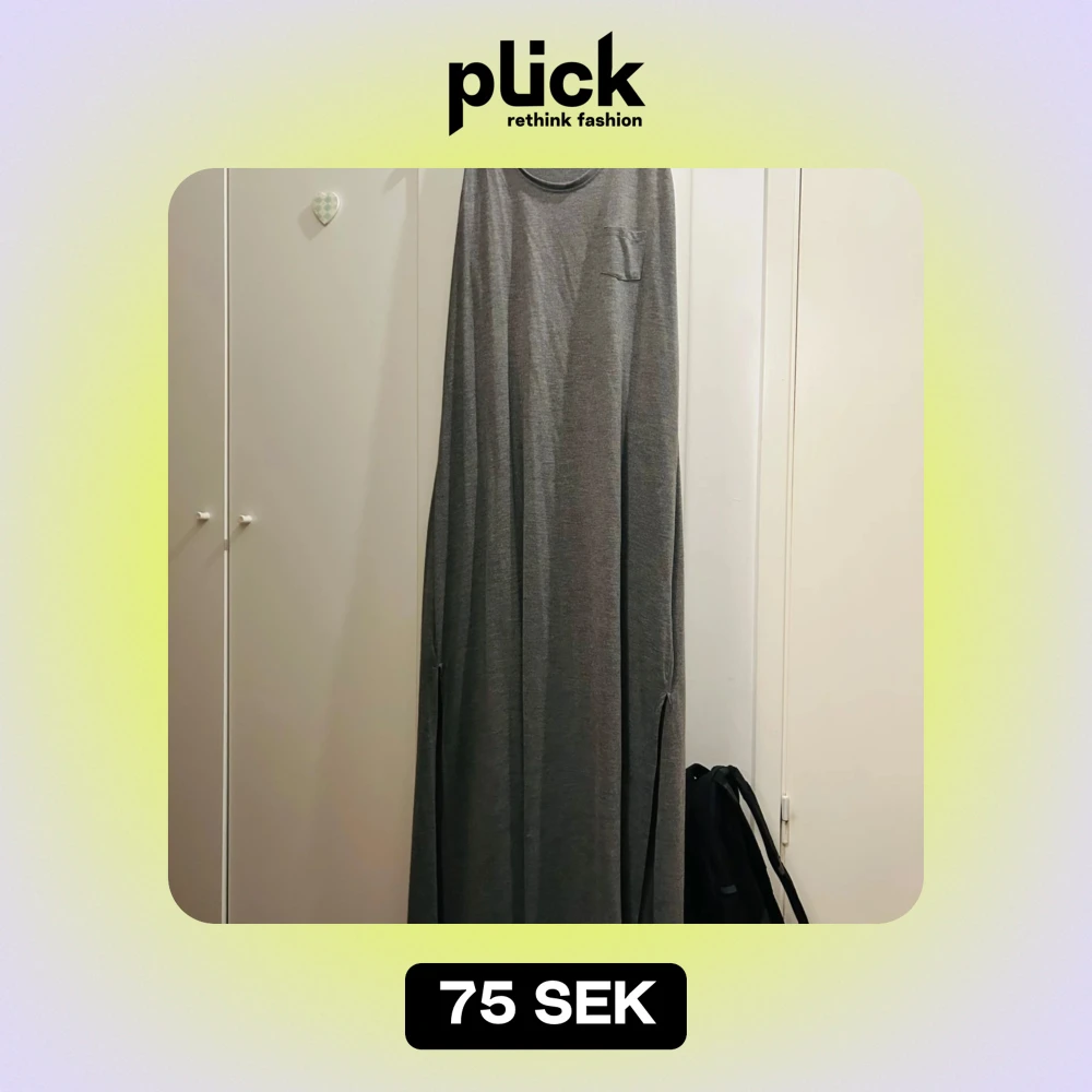 Säljer en stilren grå långklänning från Esmara. Den är ärmlös och har en avslappnad passform, perfekt för både vardag och sommarens lata dagar. Materialet känns mjukt och bekvämt mot huden. Klänningen har en liten bröstficka som en fin detalj. Perfekt för en minimalistisk look!