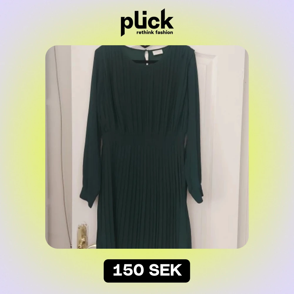 Säljer en superfin mörkgrön klänning med långa ärmar från VILA. Klänningen har en elegant plisserad design och en knappdetalj vid ärmsluten. Den har en liten öppning med knapp i nacken för en extra touch. dragkedja vid sidan. Perfekt för sommar, höst och vinter, och kan användas både till vardags och fest. Passar bra till både stövlar och klackar som till en sandal eller sneakers. den är i storlek L men klär fint en M eller S