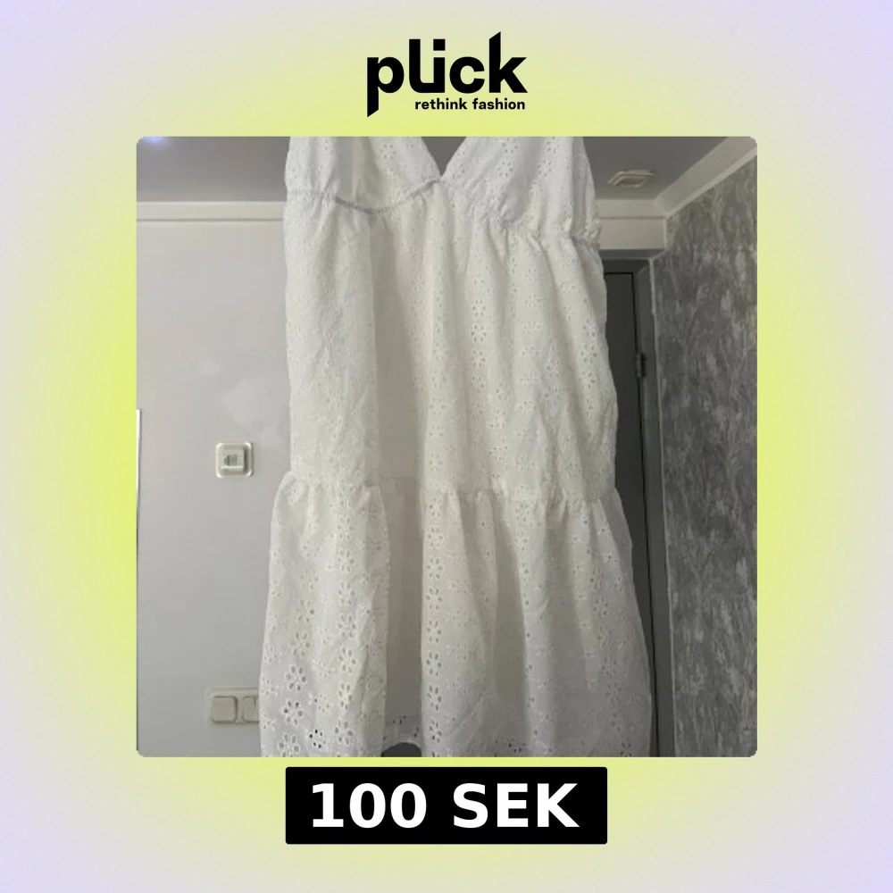 Superfin vit klänning med smala axelband och v-ringning. Klänningen har broderade blommor över hela tyget och en volang nertill. Perfekt för varma sommar dagar då den är väldigt luftig, perfekt till semester❤️ aldrig använd.