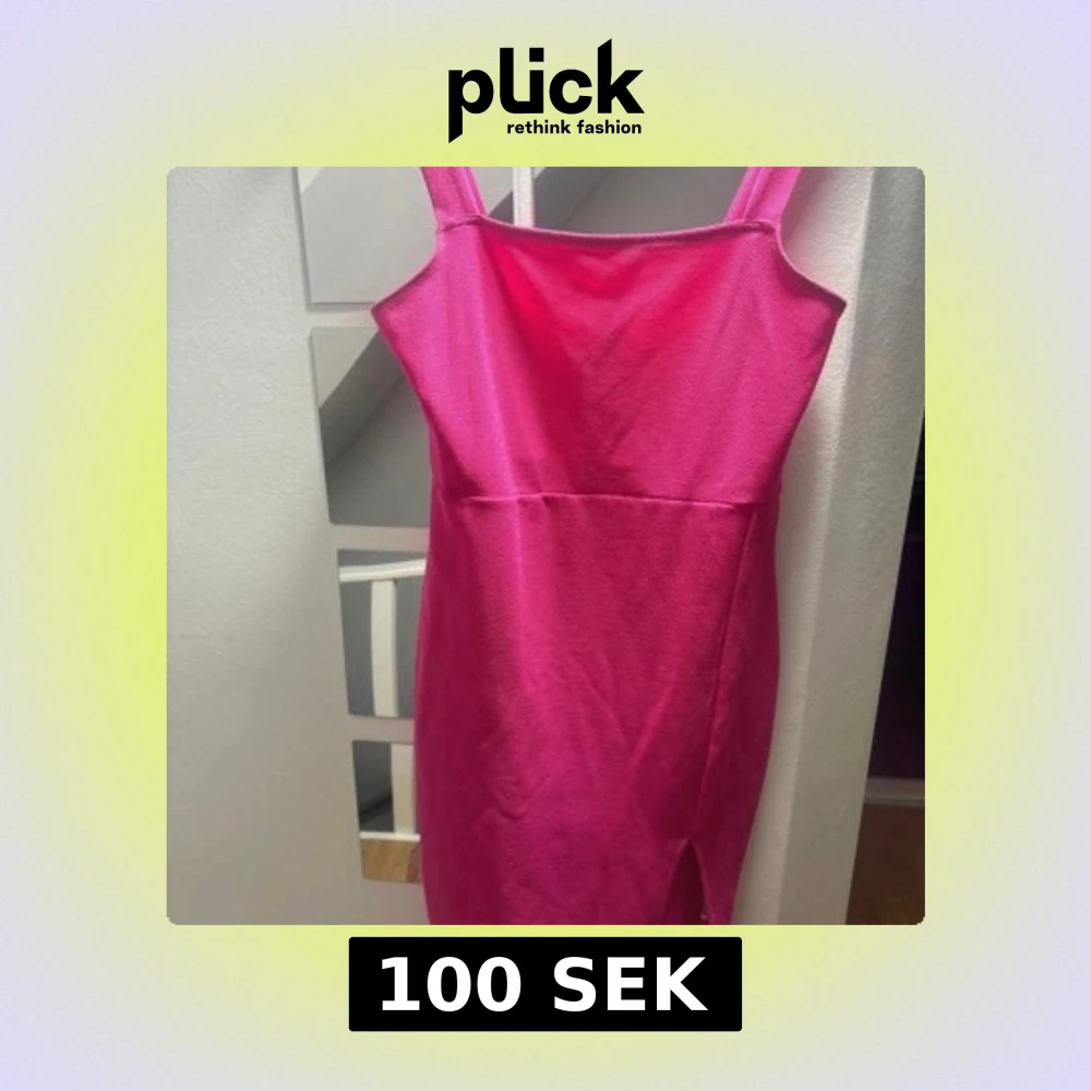 Snygg rosa klänning med en smickrande passform och slits framtill. Perfekt för en kväll ute eller en speciell tillställning. Axelbandslös design som ger en elegant look.