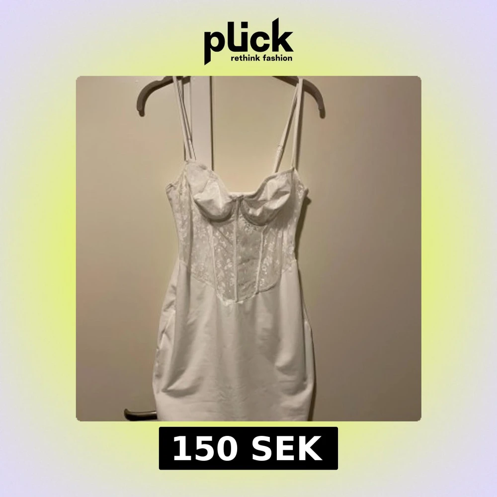 HELT NY!! Skitsnygg vit kortare klänning med smala axelband och vacker spetsdetalj på överdelen. Klänningen har en figurnära passform och har riktigt mjukt, strechigt material. Köpte för att ha på halloween men den kom för sent så den är helt oanvänd.