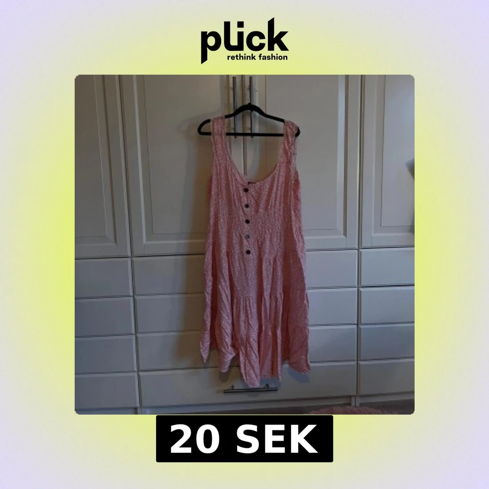 Charmig rosa klänning med ett lätt och luftigt tyg. Den har en ärmlös design och knappar framtill som ger en söt touch. Perfekt för varma dagar och avslappnade tillfällen.