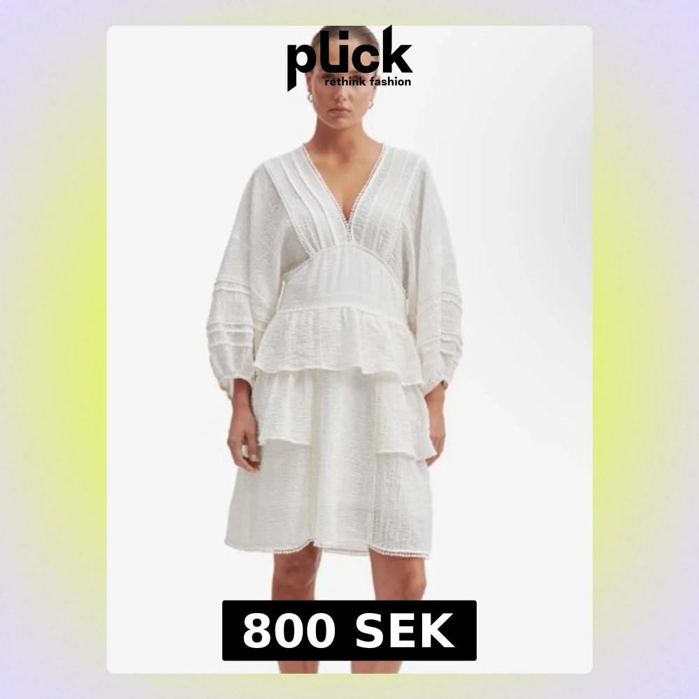 Superfin vit Maliani klänning från Second Female med v-ringning, volangdetaljer och trekvartsärmar. Helt ny kommer med påsen också, köpt för 2100 men säljer för 800!! STUDENTKLÄNNING. Storlek är i L men passar M